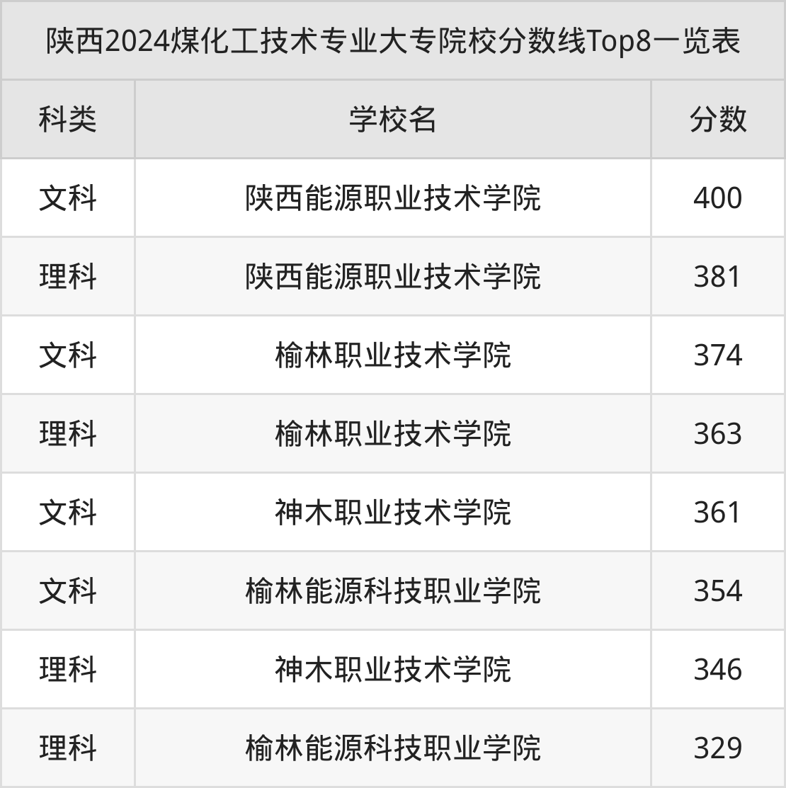 理科最低收分范围在329分~381分之间,其中最低分院校是榆林能源科技职业学院,最高分院校是陕西能源职业技术学院。结合上述分析,理科考生比文科考生更容易上煤化工技术大专院校。