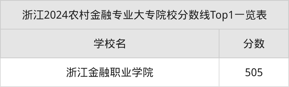 全国大专院校农村金融专业最低收分为505分,对应的招生院校是浙江金融职业学院。