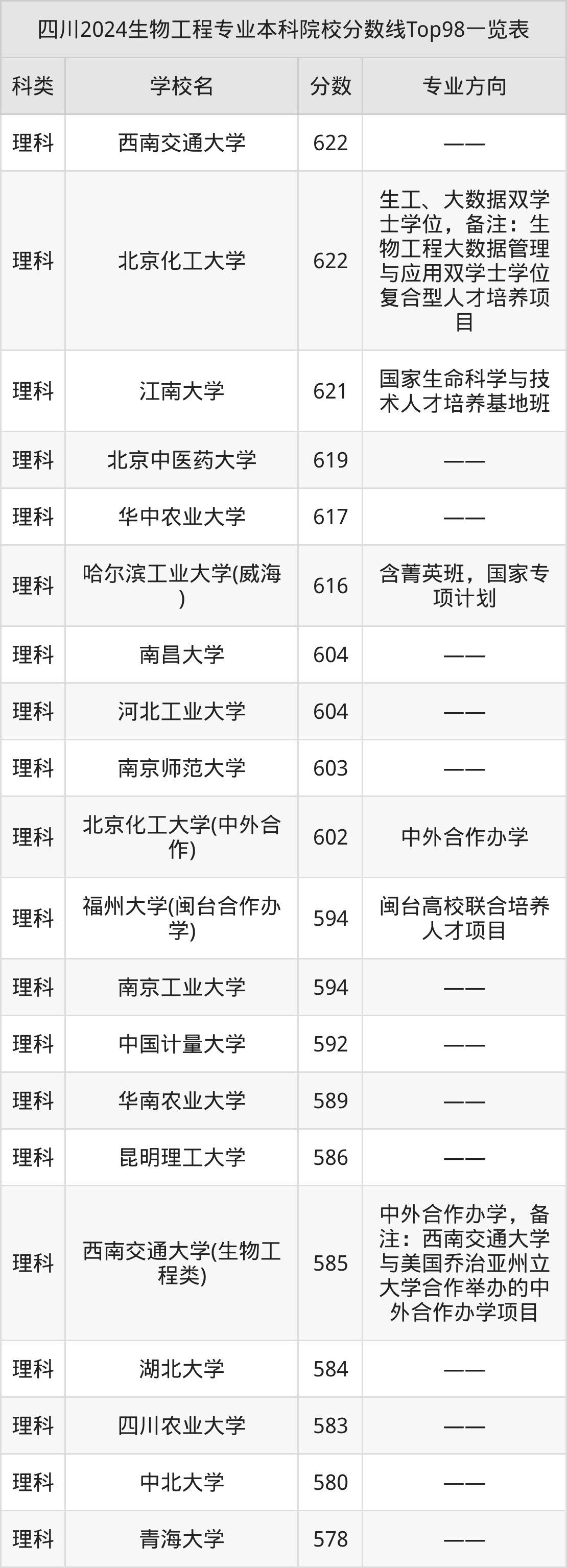 上述院校为有排名的院校,下面根据2024年生物工程专业本科招生计划表,列举全部招生院校名单(不同省份招生院校名单及数量有差异,这里以江苏高考为例):