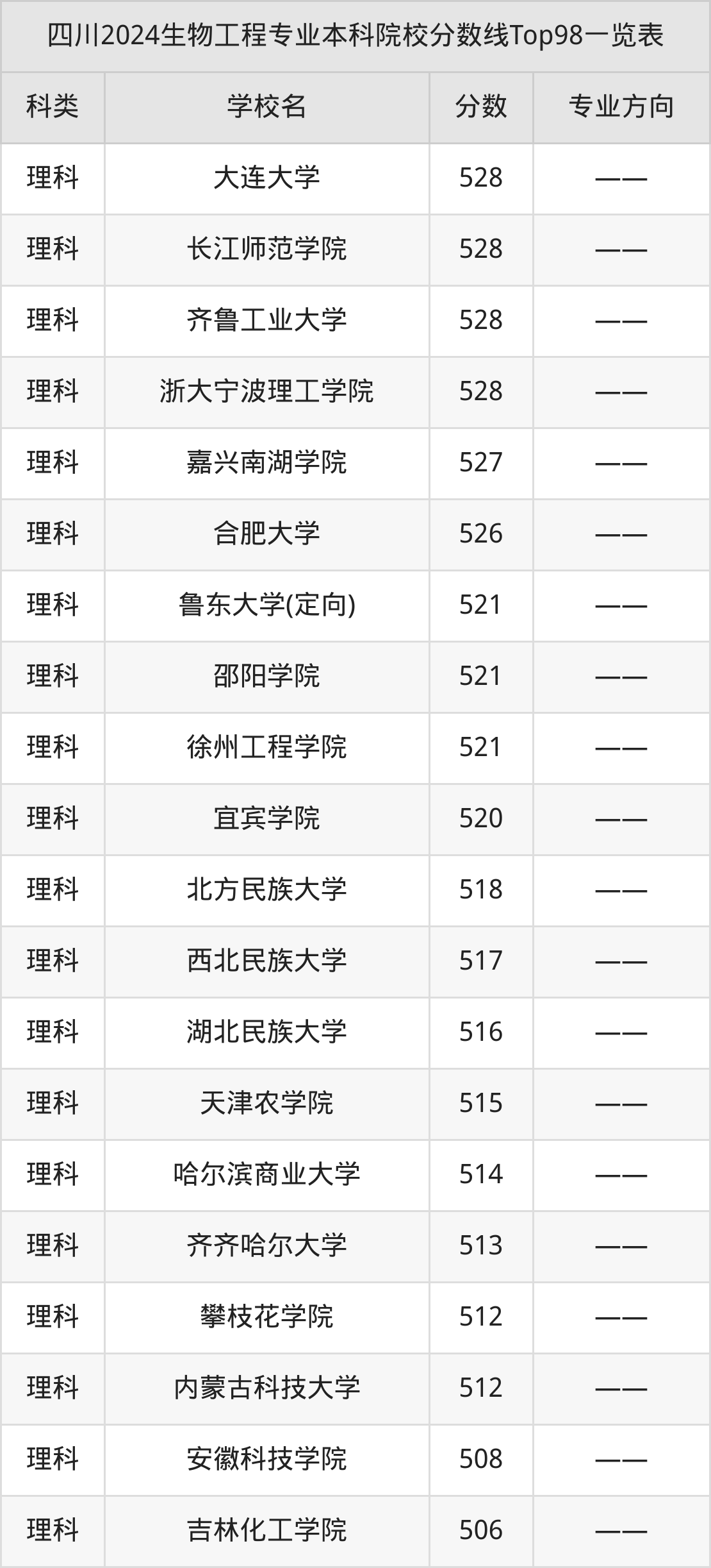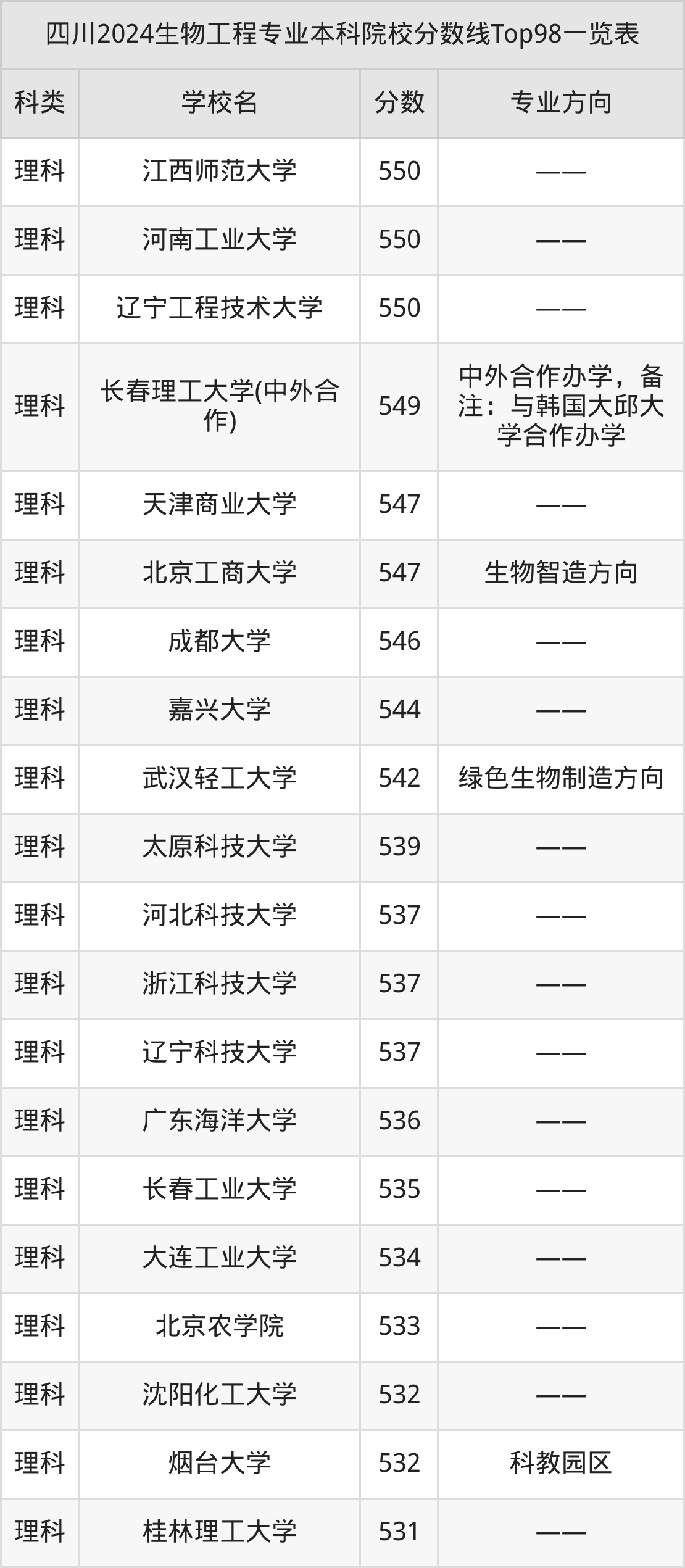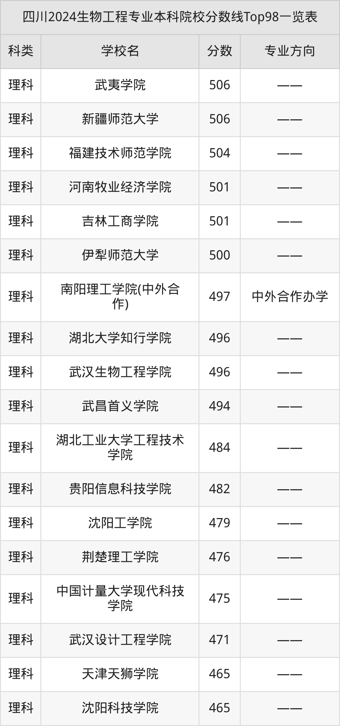 生物工程专业本科院校实力排名靠前的有上海交通大学、华东理工大学、天津大学等。2024年本科生物工程专业招生最低分数为465分(理科)。