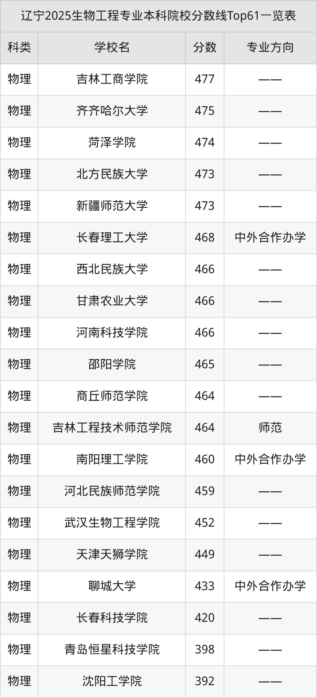 上述院校为有排名的院校,下面根据2025年生物工程专业本科招生计划表,列举全部招生院校名单(不同省份招生院校名单及数量有差异,这里以甘肃高考为例):