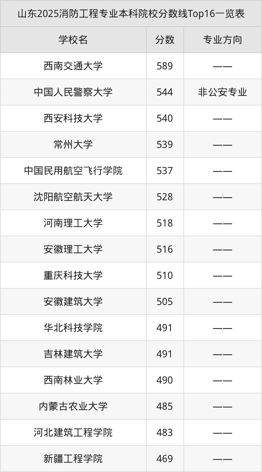 下面是消防工程专业本科大学排名一览表(12所):