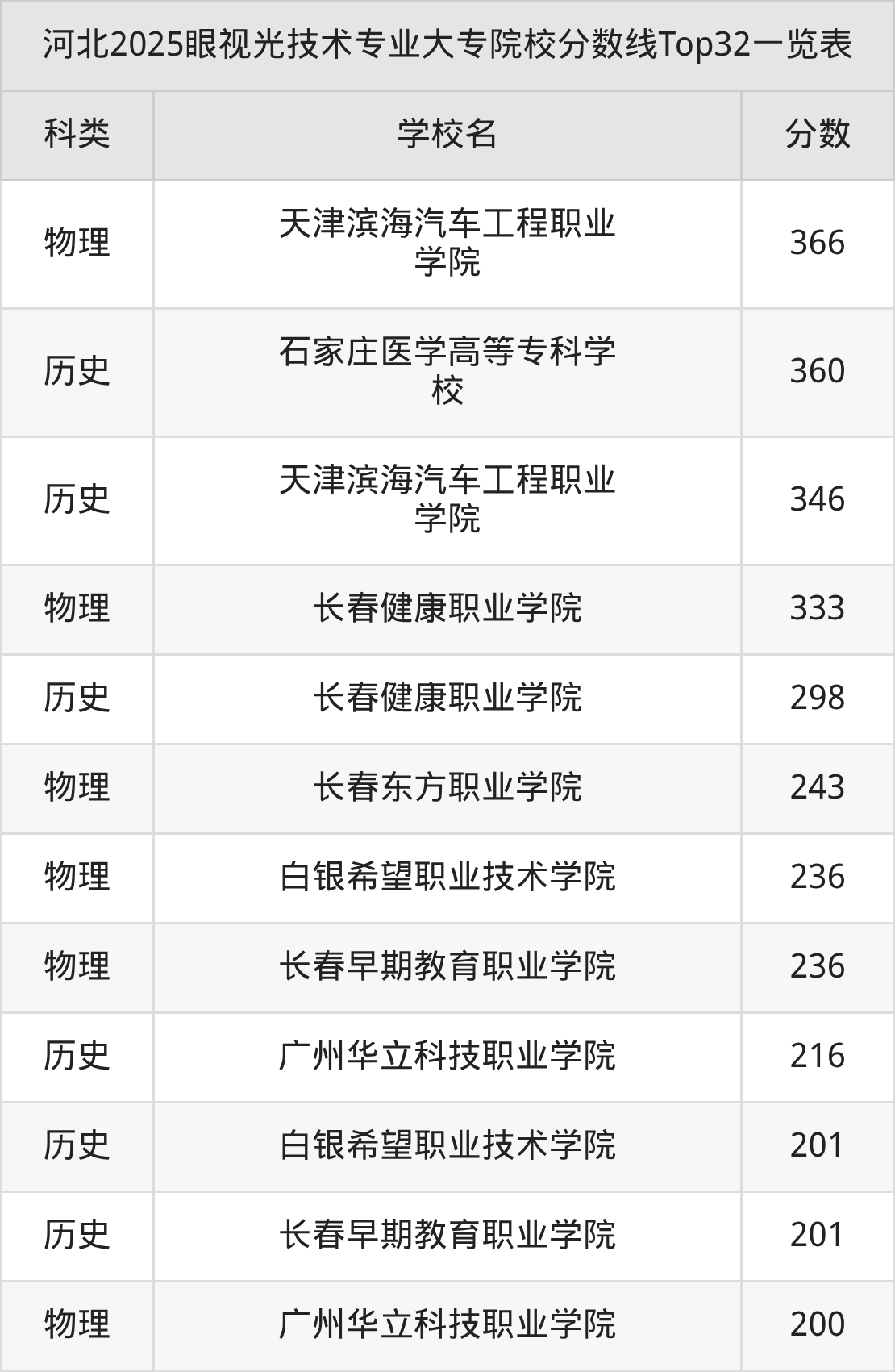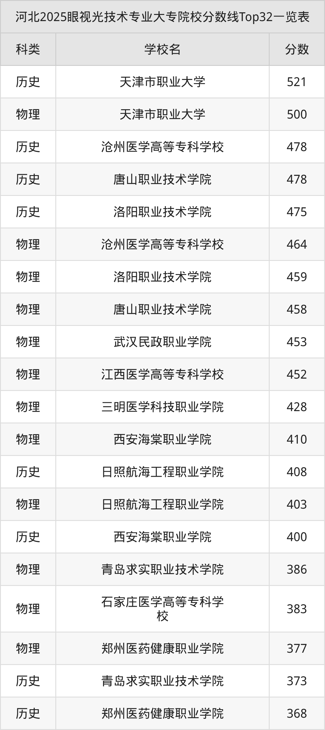 三、眼视光技术大专2025录取分数线