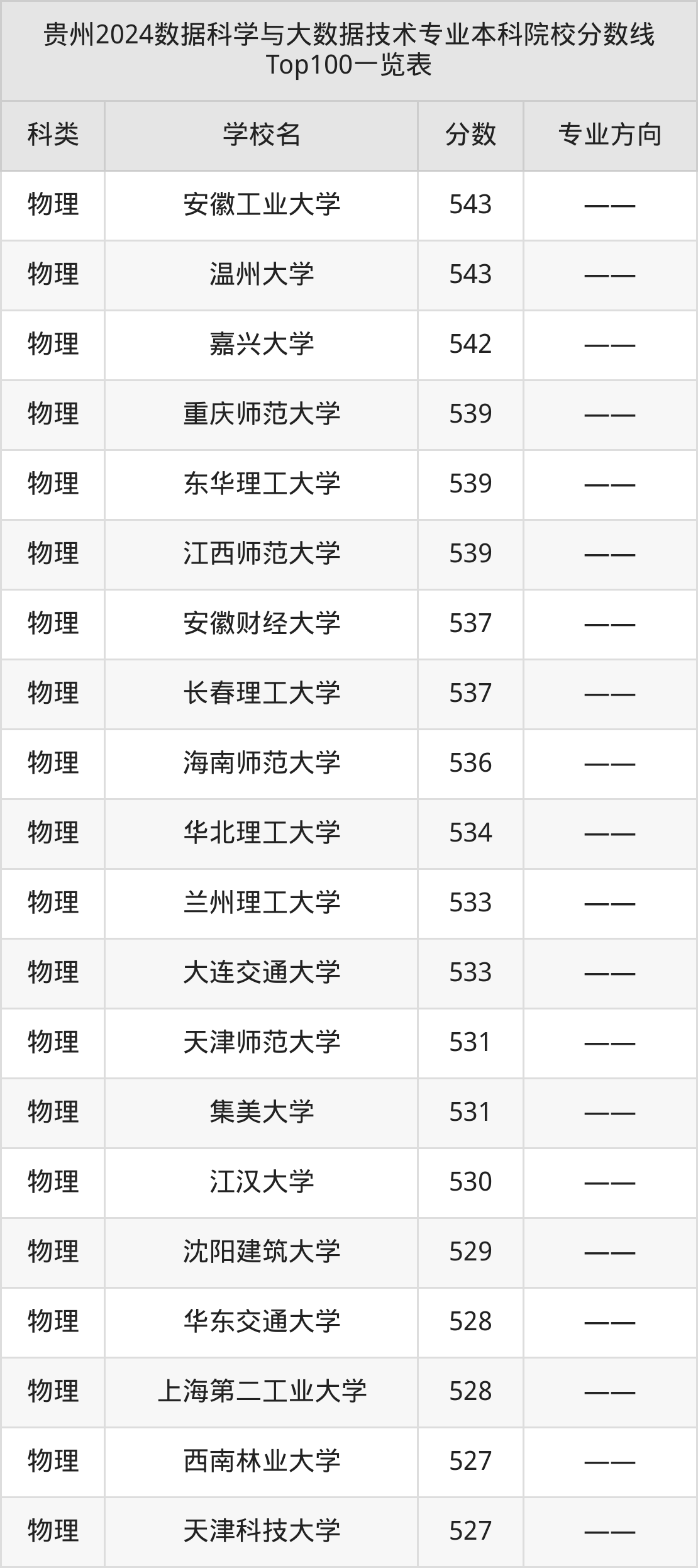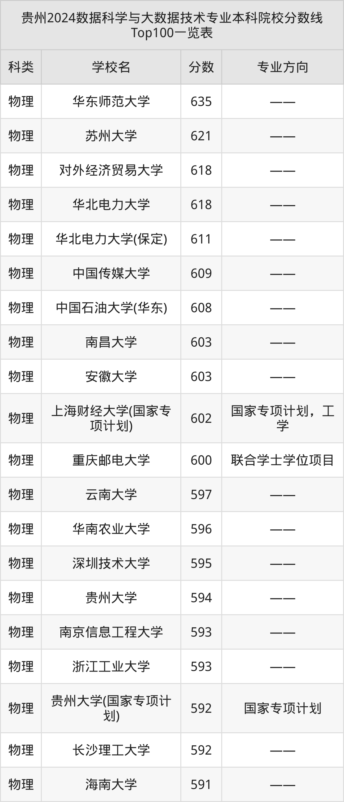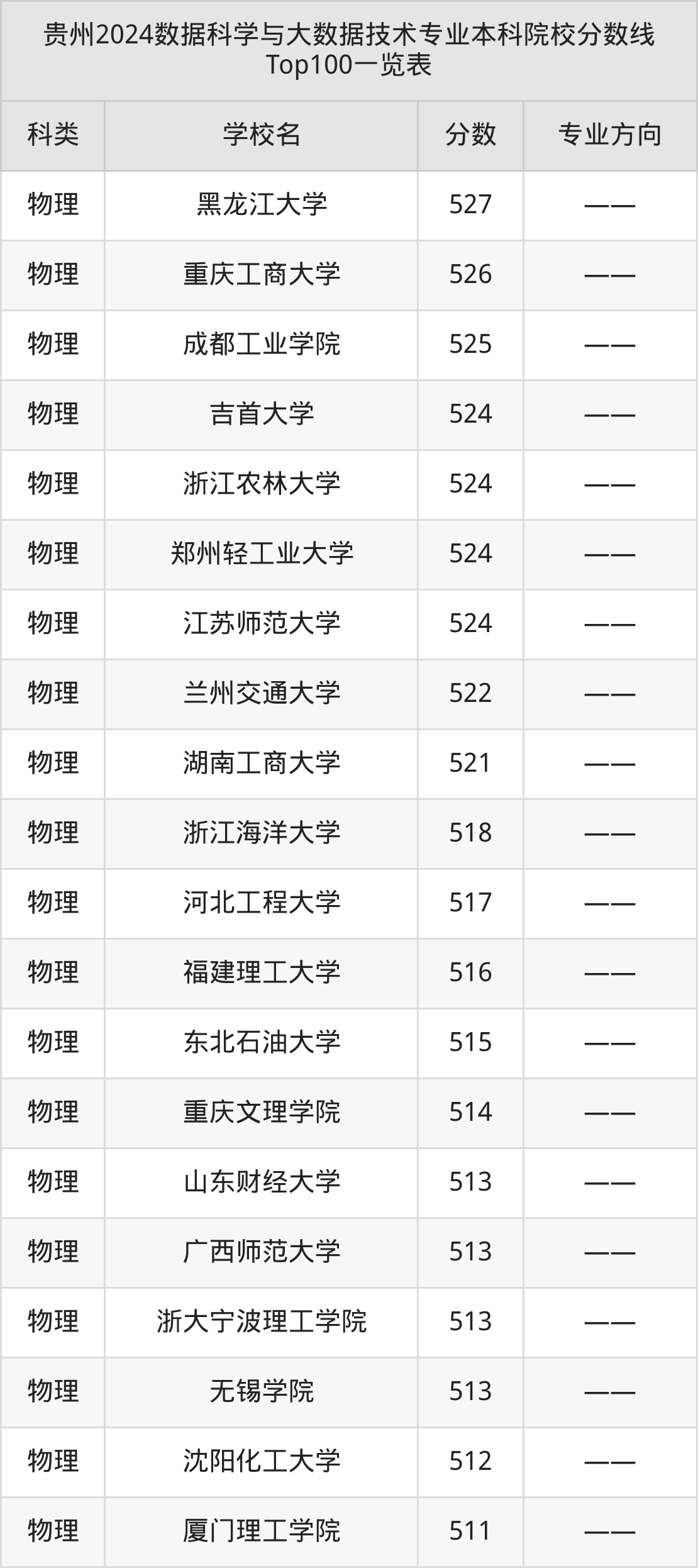 下面是数据科学与大数据技术专业本科大学排名一览表(378所):