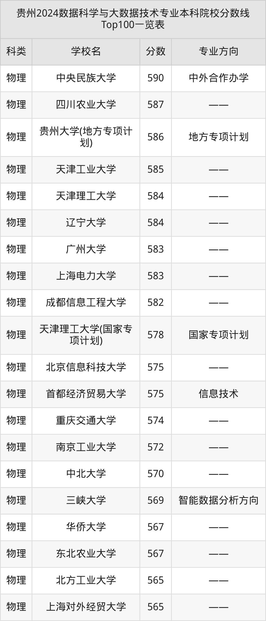 三、数据科学与大数据技术本科大学2024录取分数线