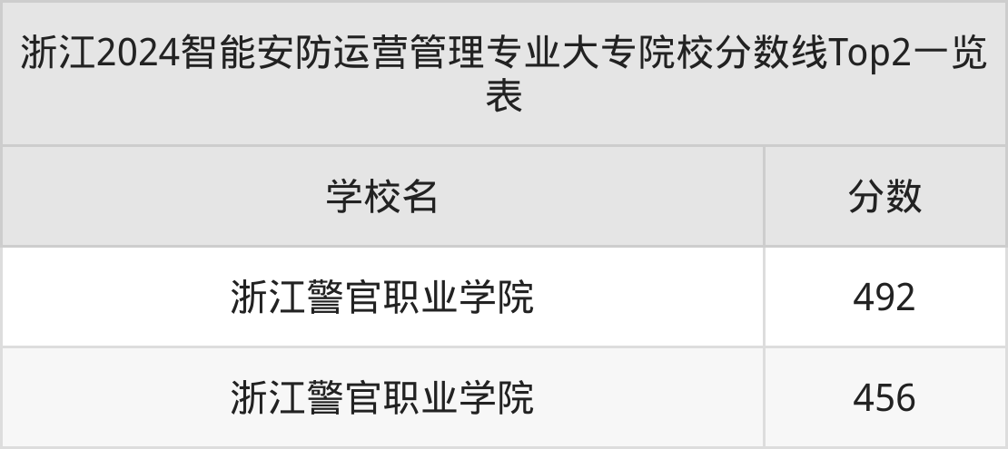上述院校为有排名的院校,下面根据2024年智能安防运营管理专业大专招生计划表,列举全部招生院校名单(不同省份招生院校名单及数量有差异,这里以浙江高考为例):