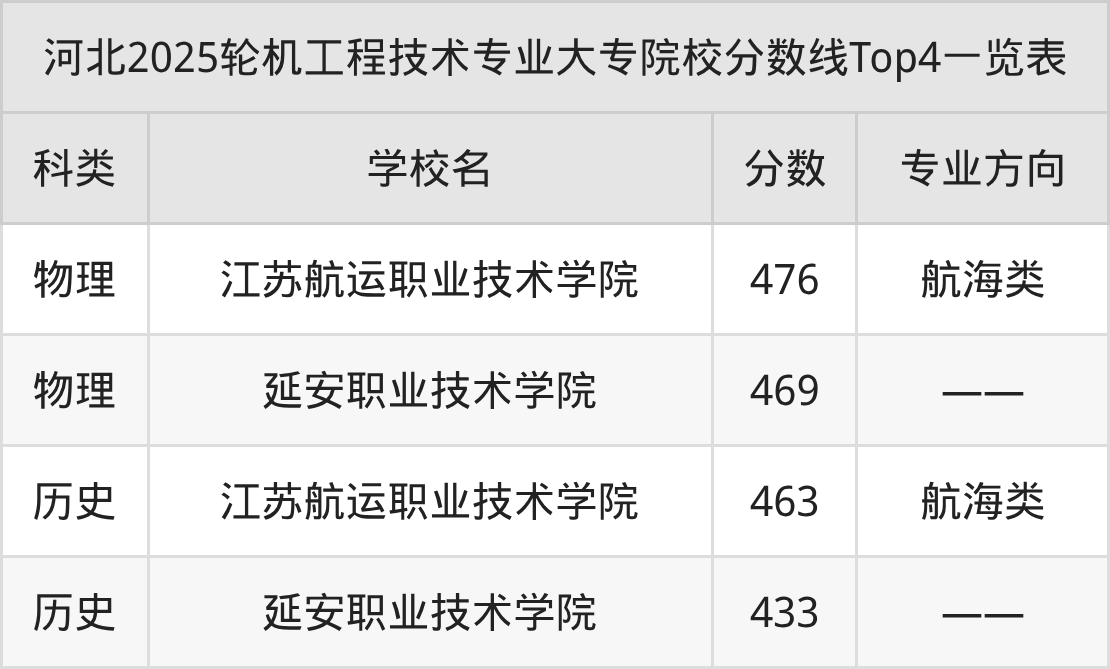 轮机工程技术专业大专院校实力排名靠前的有江苏航运职业技术学院、江苏海事职业技术学院、武汉船舶职业技术学院等。2025年大专轮机工程技术专业招生最低分数为433分(历史类),而想报考该专业的物理类考生分数至少要在469分以上。