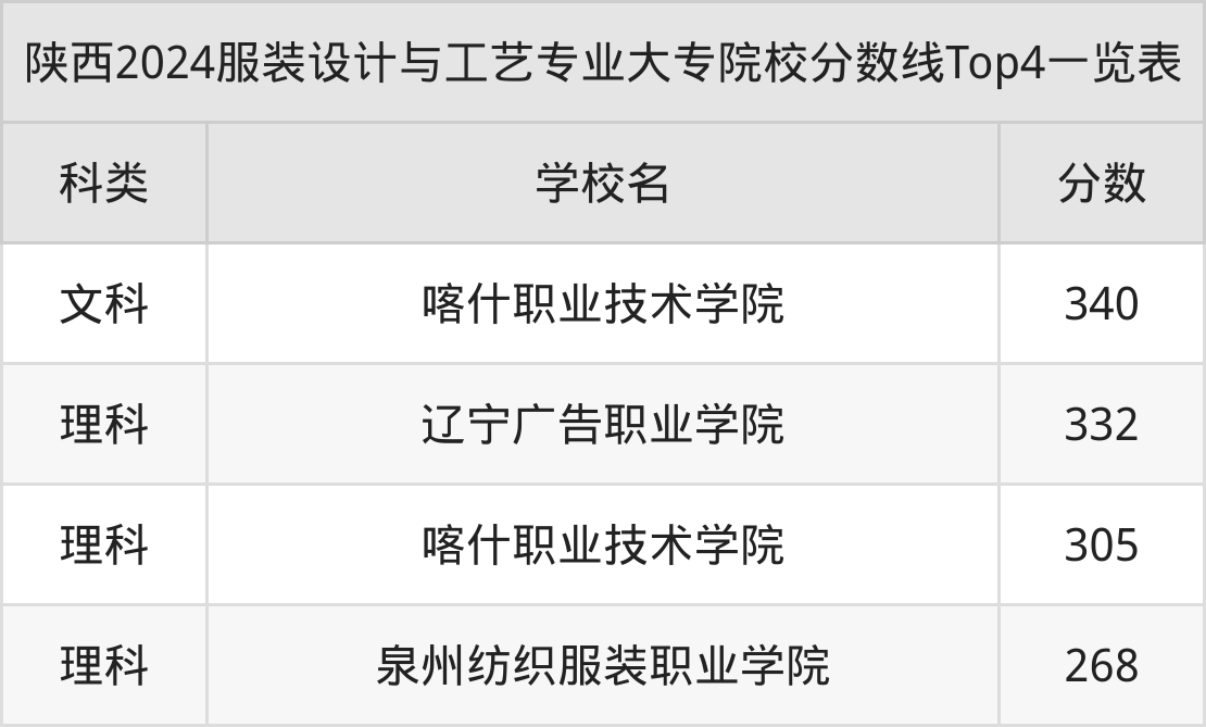 全国大专院校服装设计与工艺专业文科最低收分为340分,对应的招生院校是喀什职业技术学院。