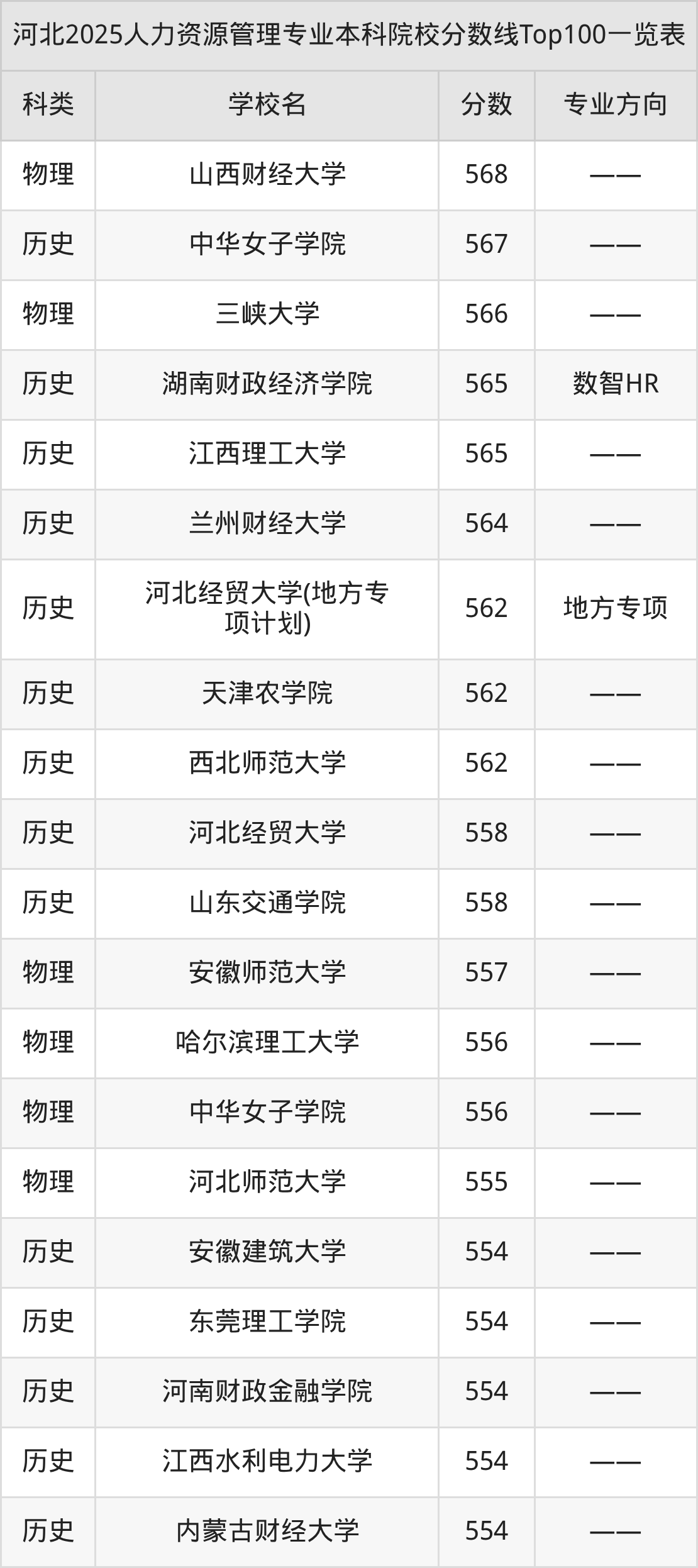 三、人力资源管理本科大学2025录取分数线