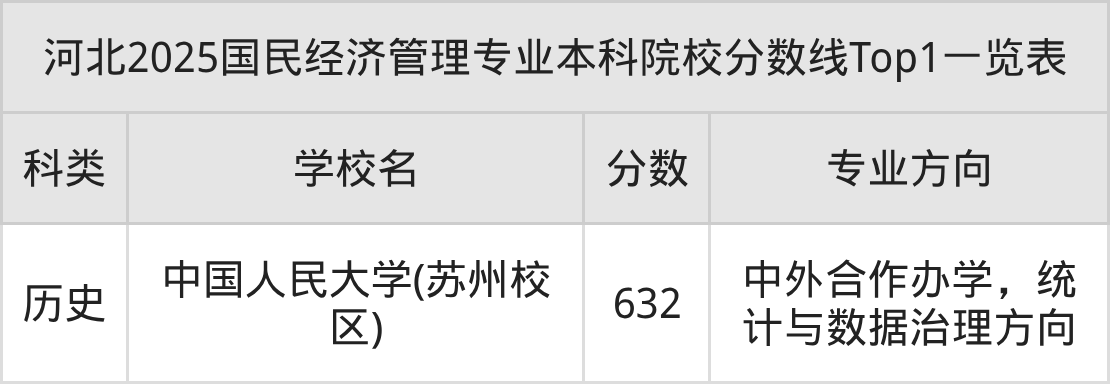 全国本科院校国民经济管理专业历史类最低收分为632分,对应的招生院校是中国人民大学(苏州校区)。