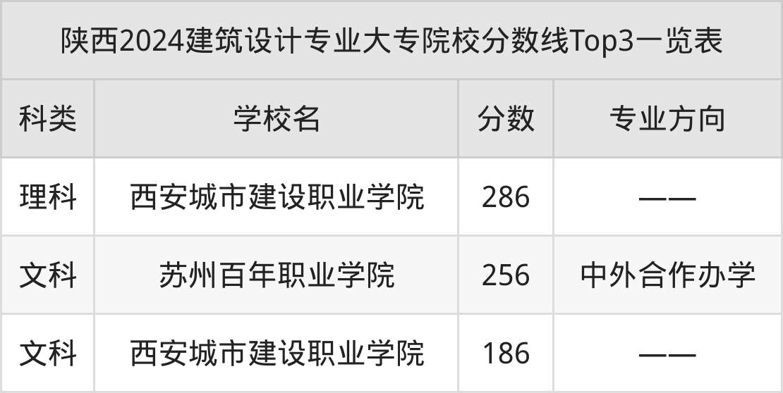 建筑设计专业大专院校实力排名靠前的有浙江建设职业技术学院、深圳职业技术大学、江苏建筑职业技术学院等。2024年大专建筑设计专业招生最低分数为186分(文科),而想报考该专业的理科考生分数至少要在286分以上。