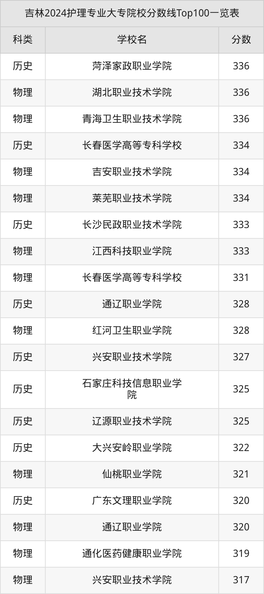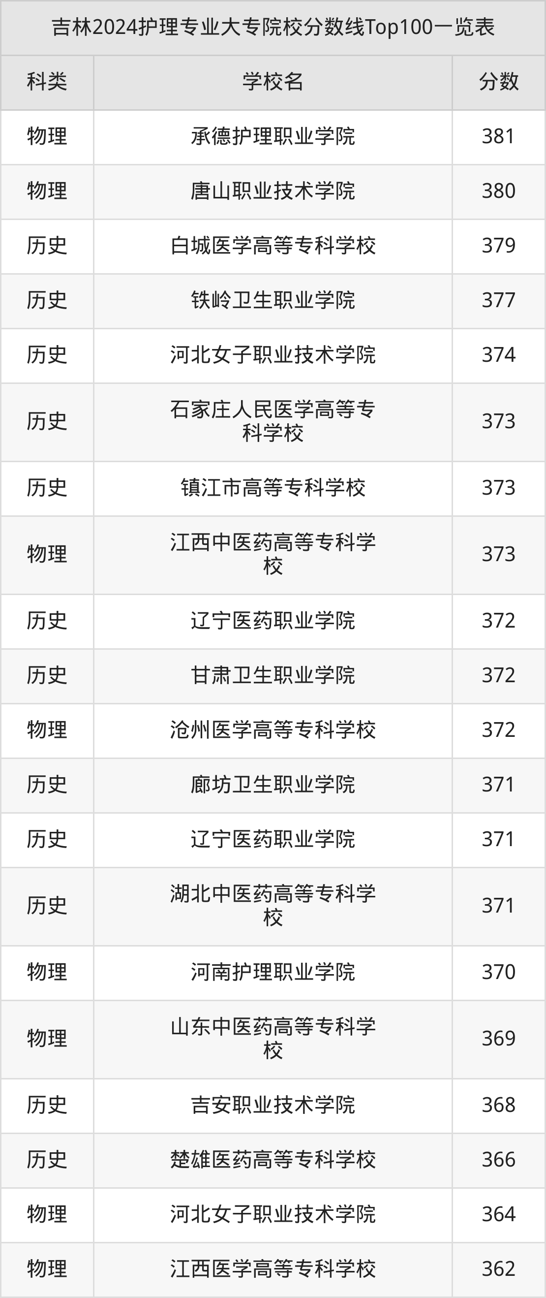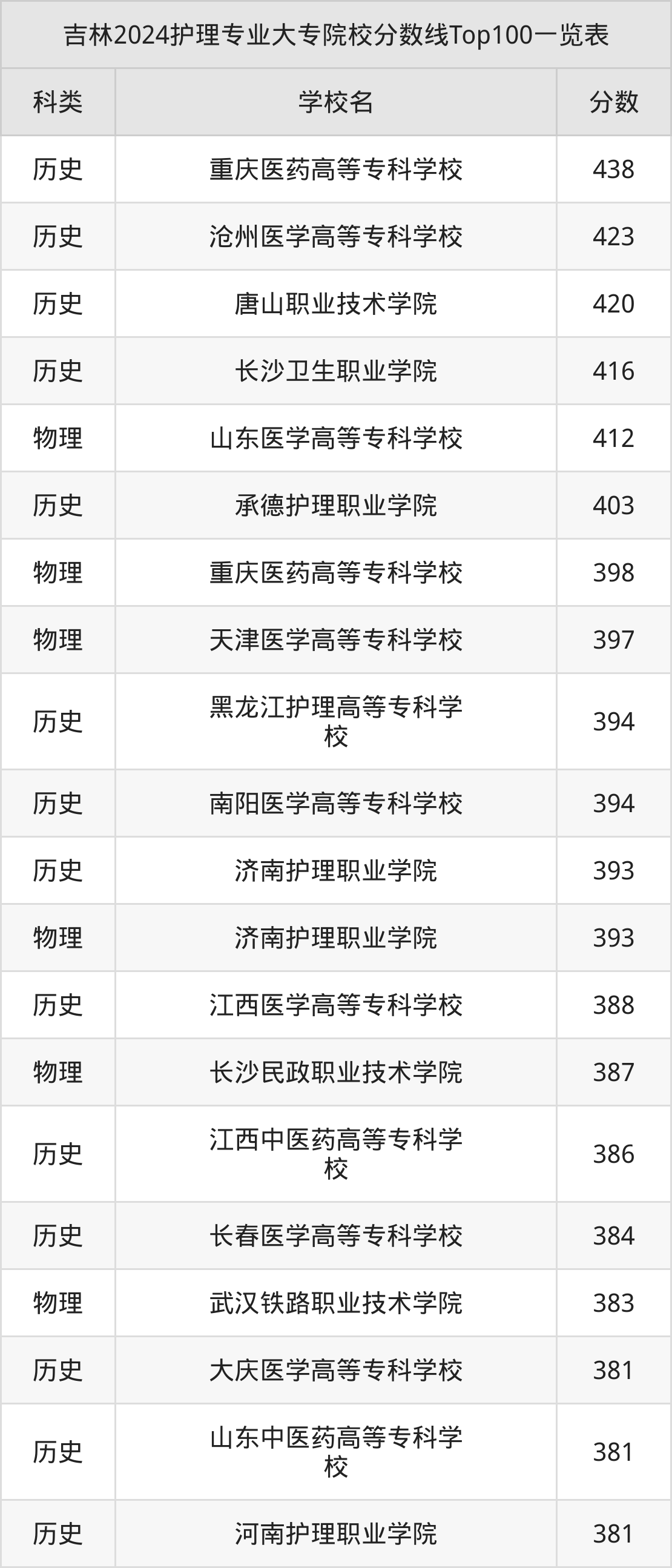 护理专业大专院校实力排名靠前的有天津医学高等专科学校、岳阳职业技术学院、江苏医药职业学院等。2024年大专护理专业招生最低分数为162分(历史类),而想报考该专业的物理类考生分数至少要在174分以上。