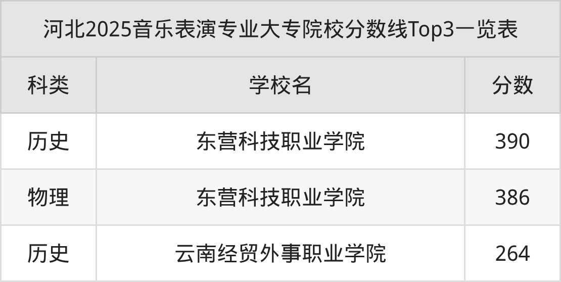 物理类最低收分为386分,对应的招生院校是东营科技职业学院。结合上述分析,历史类考生比物理类考生更容易上音乐表演大专院校。