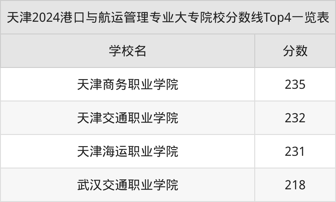 全国大专院校港口与航运管理专业最低收分范围在218分~235分之间,考生最容易被录取的是武汉交通职业学院,分数门槛在本科线上218分。最难被录取的是天津商务职业学院,分数门槛在本科线上235分。