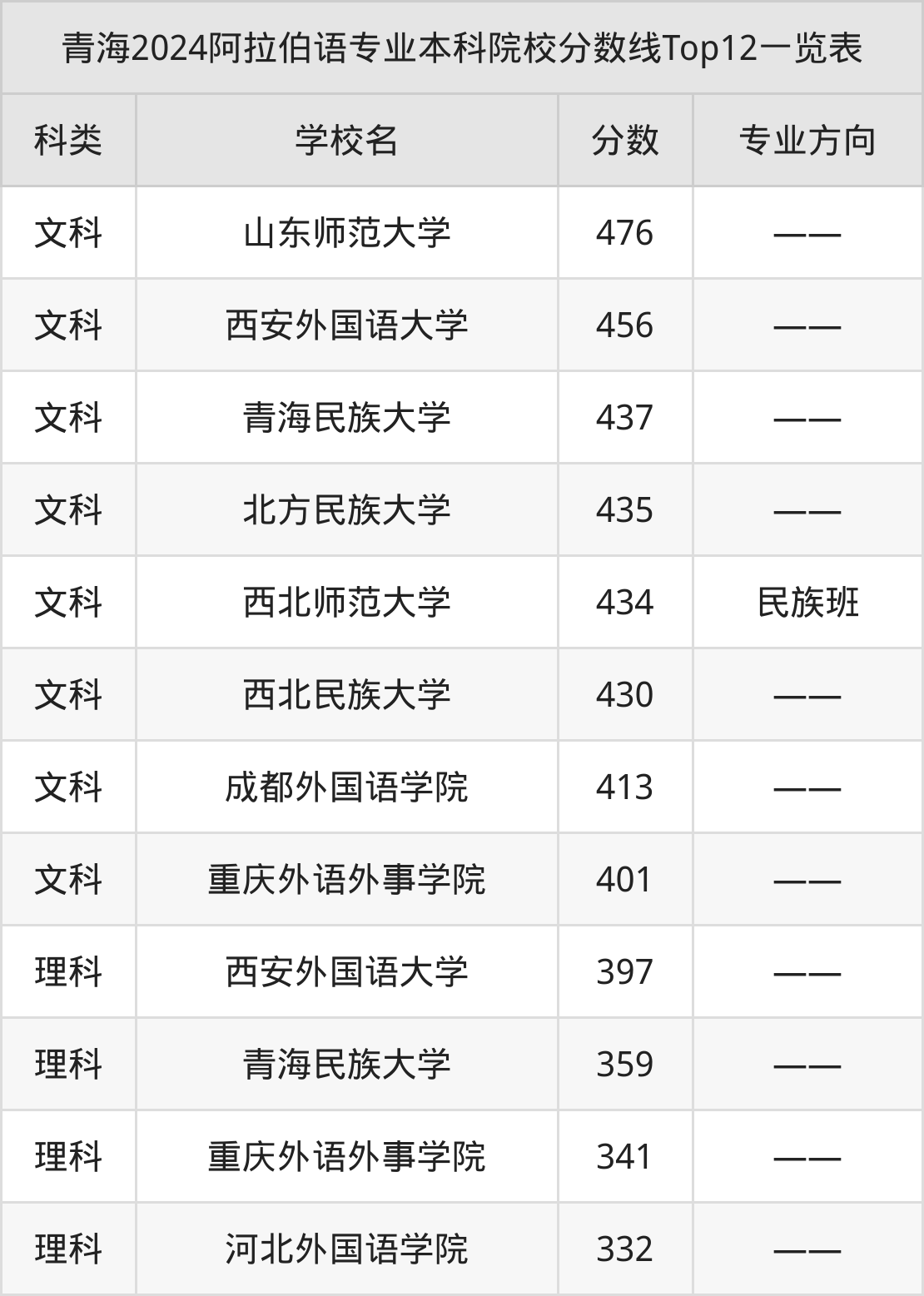 阿拉伯语专业本科院校实力排名靠前的有北京大学、北京外国语大学、北京语言大学等。2024年本科阿拉伯语专业招生最低分数为332分(理科),而想报考该专业的文科考生分数至少要在401分以上。