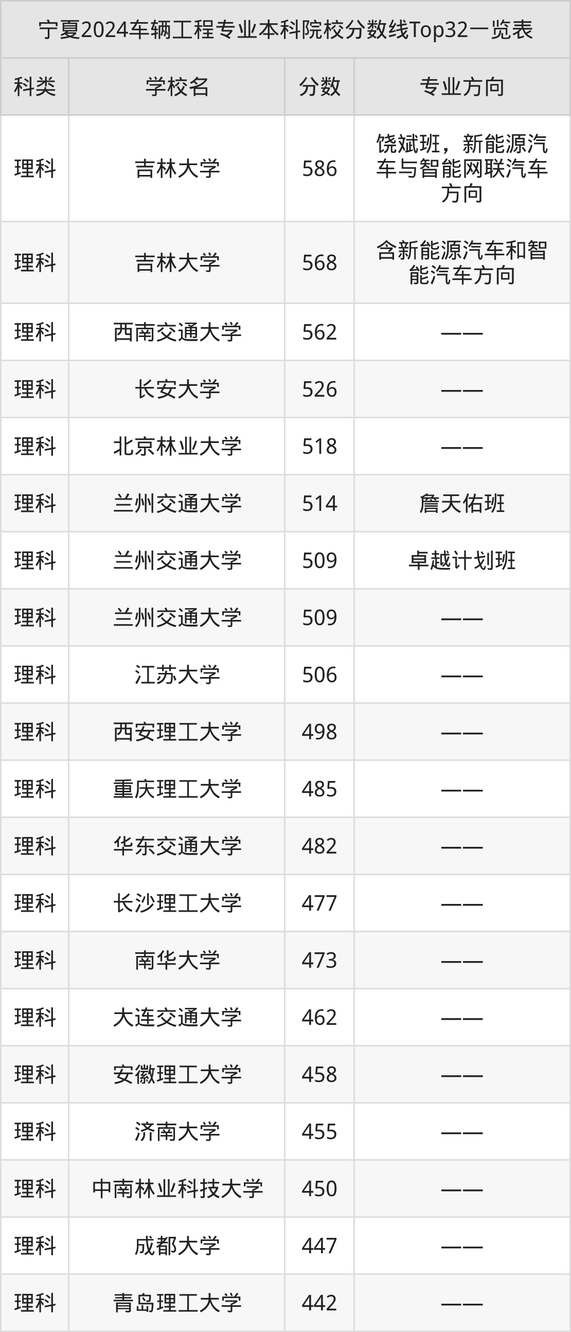 上述院校为有排名的院校,下面根据2024年车辆工程专业本科招生计划表,列举全部招生院校名单(不同省份招生院校名单及数量有差异,这里以吉林高考为例):