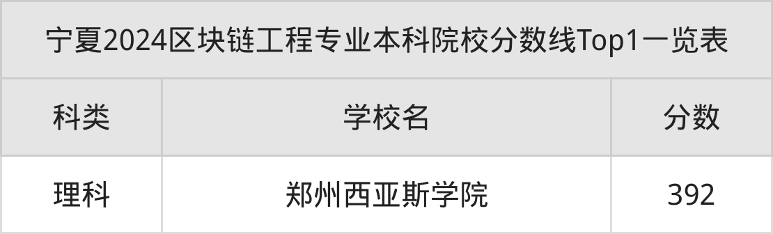 全国本科院校区块链工程专业理科最低收分为392分,对应的招生院校是郑州西亚斯学院。