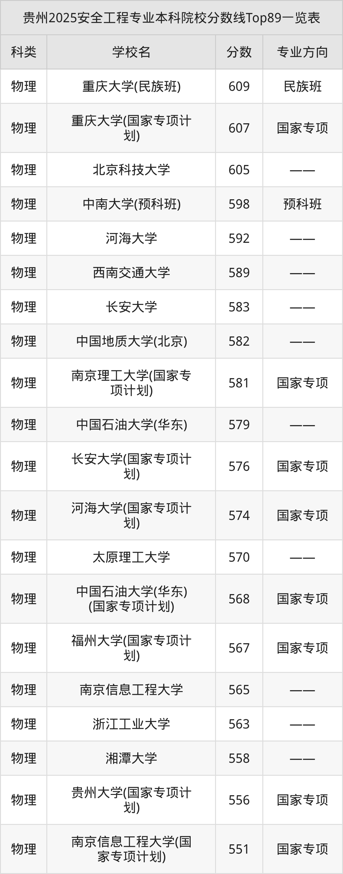 以贵州高考2025年专业招录分数为例: