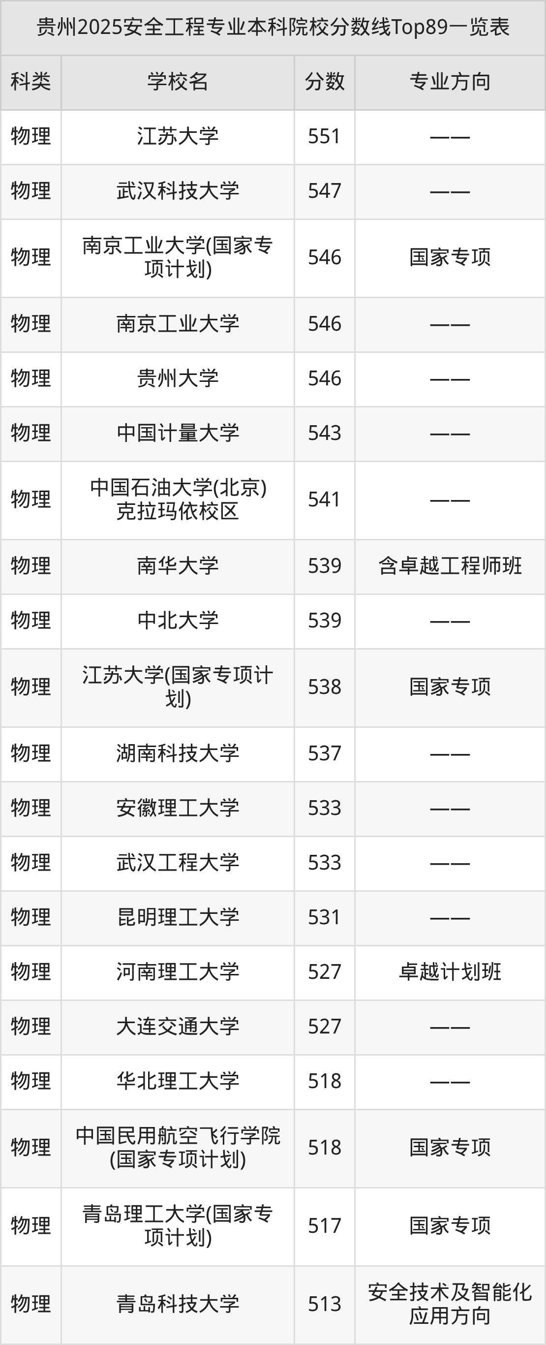 下面是安全工程专业本科大学排名一览表(88所):