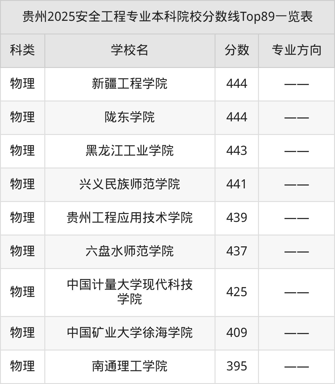 上述院校为有排名的院校,下面根据2025年安全工程专业本科招生计划表,列举全部招生院校名单(不同省份招生院校名单及数量有差异,这里以浙江高考为例):