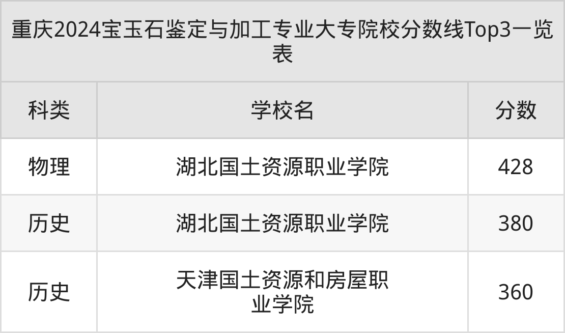 宝玉石鉴定与加工专业大专院校实力排名靠前的有广州番禺职业技术学院、北京经济管理职业学院、湖北国土资源职业学院等。2024年大专宝玉石鉴定与加工专业招生最低分数为360分(历史类),而想报考该专业的物理类考生分数至少要在428分以上。