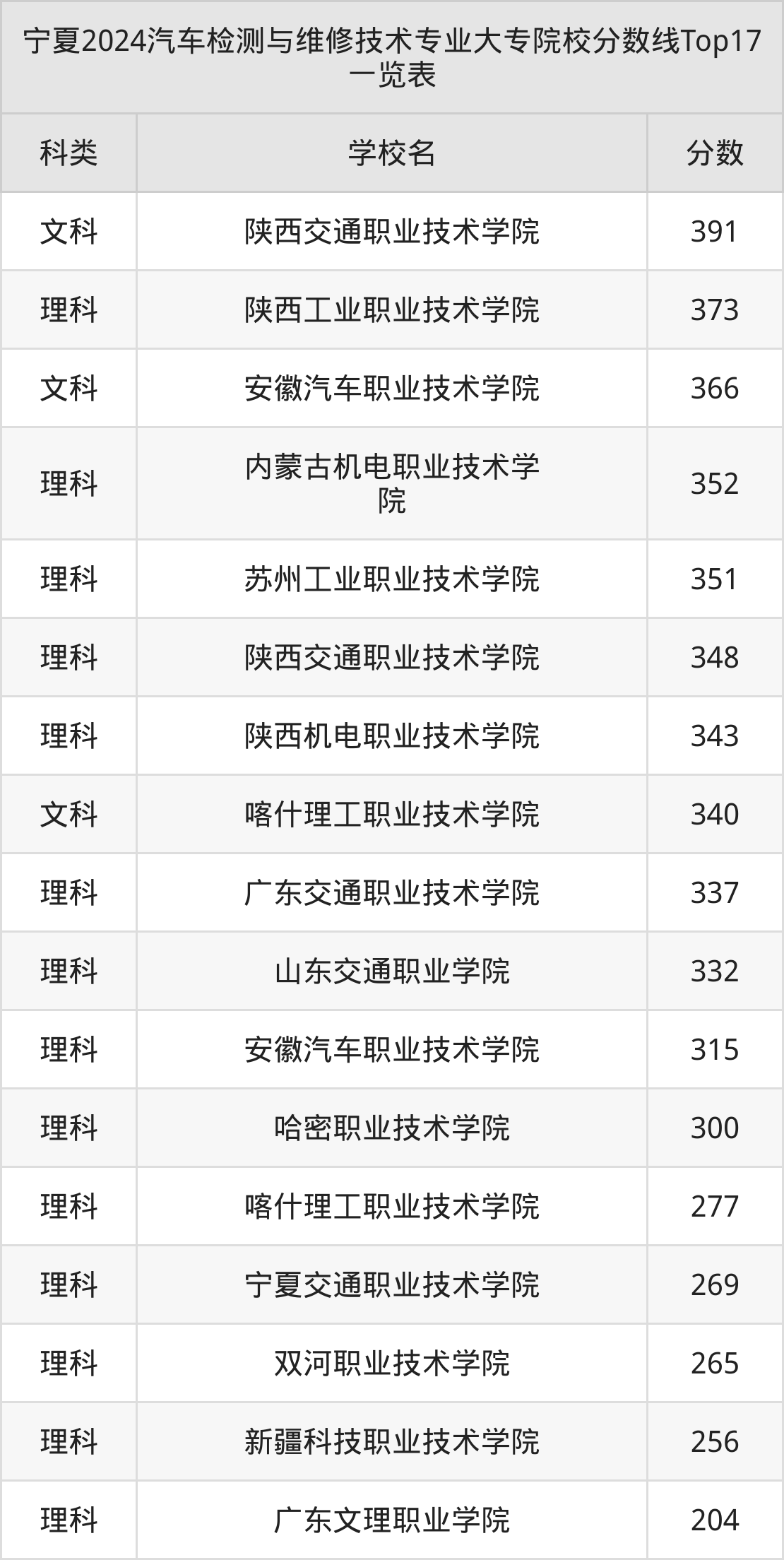 上述院校为有排名的院校,下面根据2024年汽车检测与维修技术专业大专招生计划表,列举全部招生院校名单(不同省份招生院校名单及数量有差异,这里以山西高考为例):