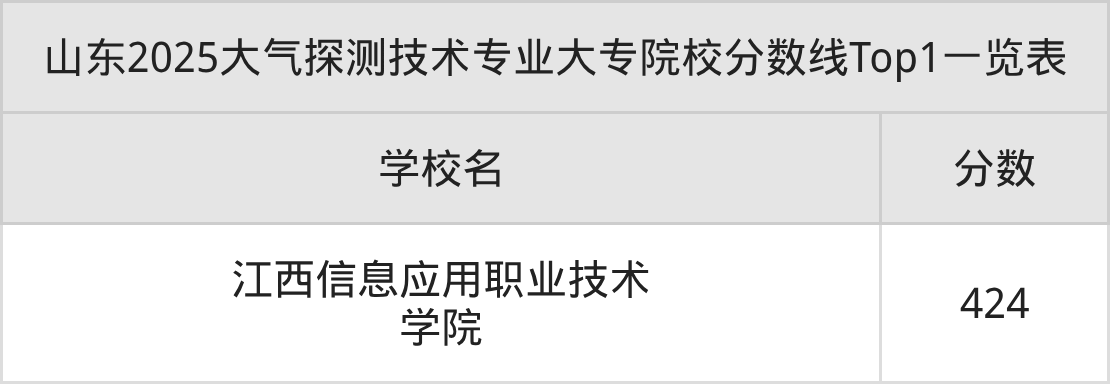 全国大专院校大气探测技术专业最低收分为424分,对应的招生院校是江西信息应用职业技术学院。