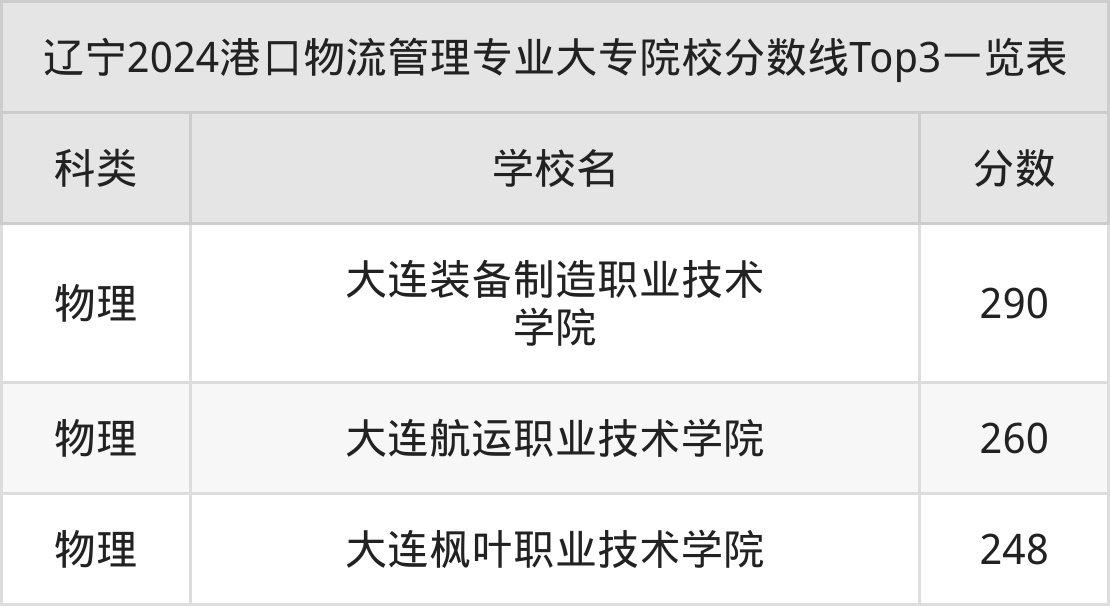 三、港口物流管理大专2024录取分数线