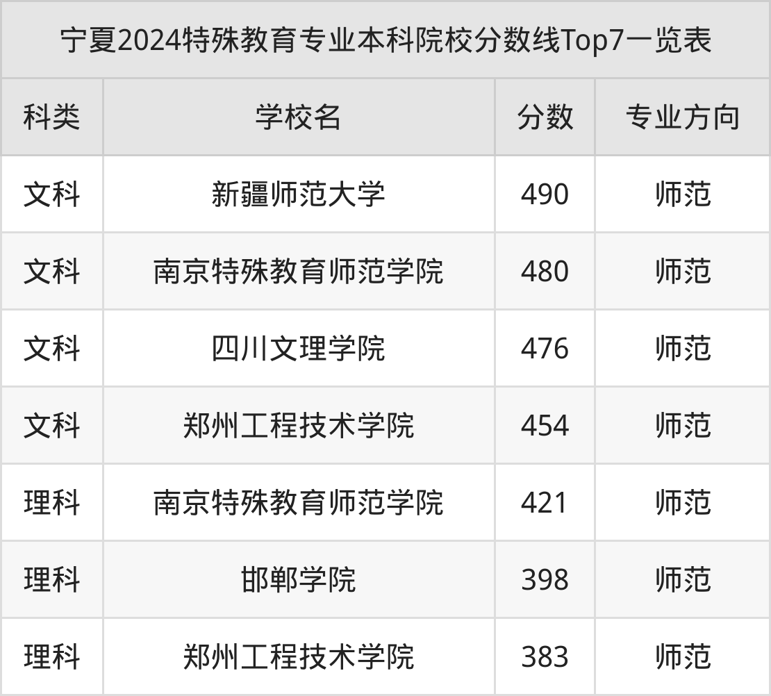 上述院校为有排名的院校,下面根据2024年特殊教育专业本科招生计划表,列举全部招生院校名单(不同省份招生院校名单及数量有差异,这里以宁夏高考为例):
