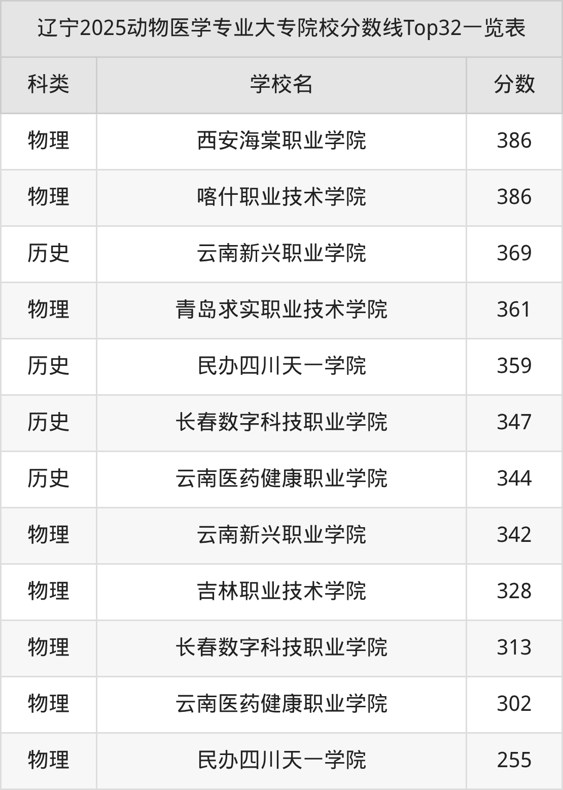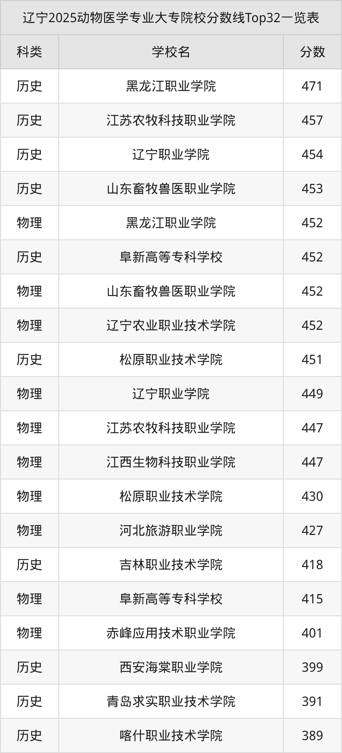 三、动物医学大专2025录取分数线