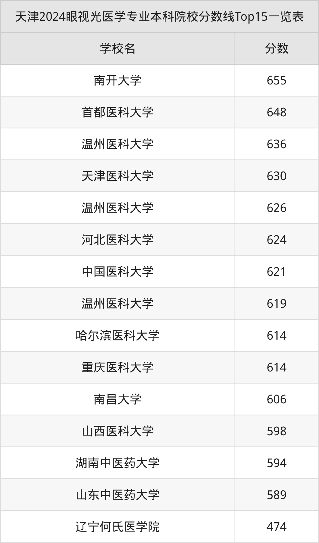 三、眼视光医学本科大学2024录取分数线