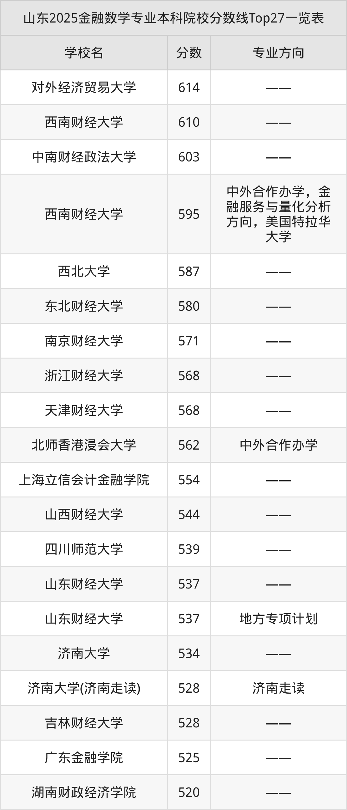 三、金融数学本科大学2025录取分数线