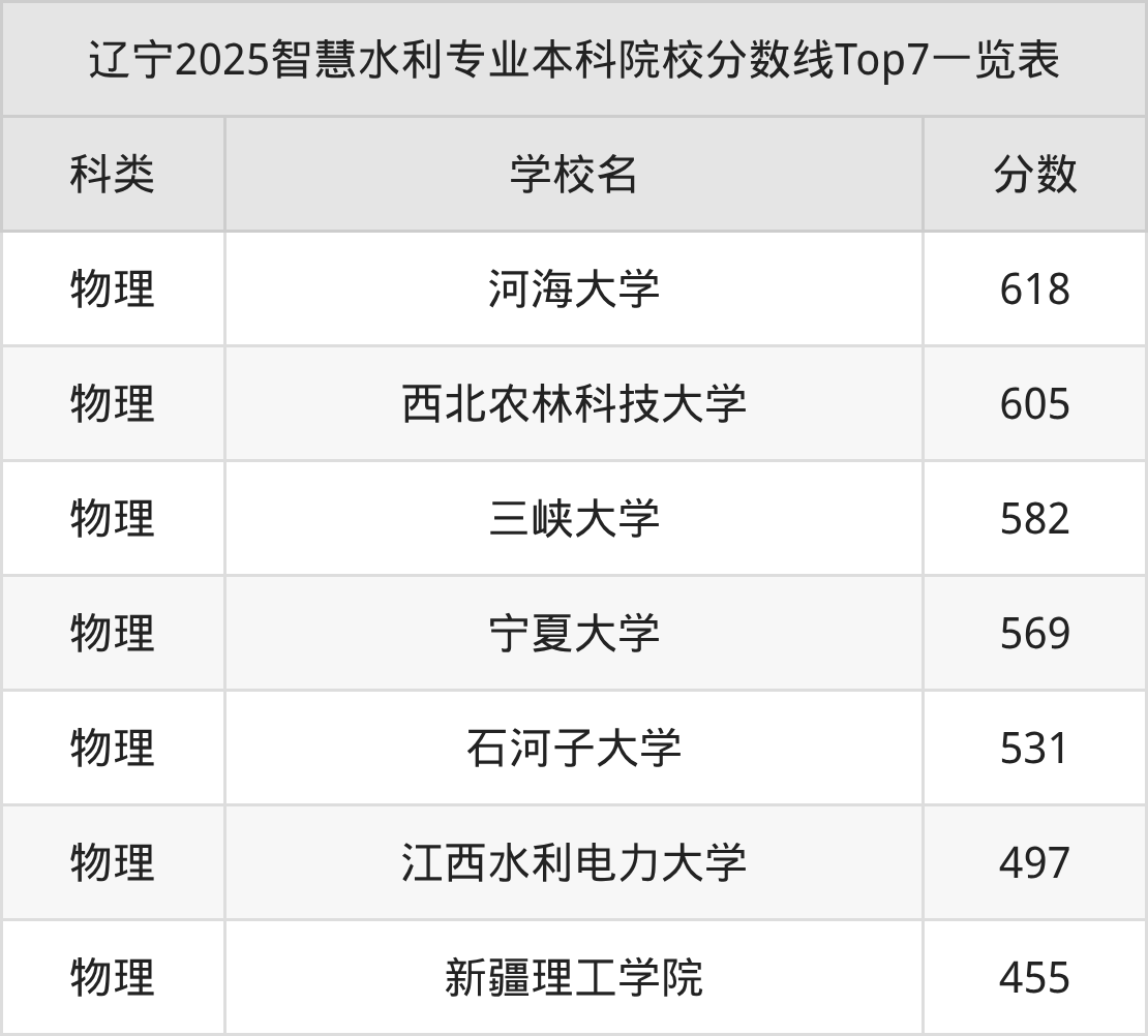 智慧水利专业本科院校实力排名靠前的有河海大学、武汉大学、西北农林科技大学等。2025年本科智慧水利专业招生最低分数为455分(物理类)。