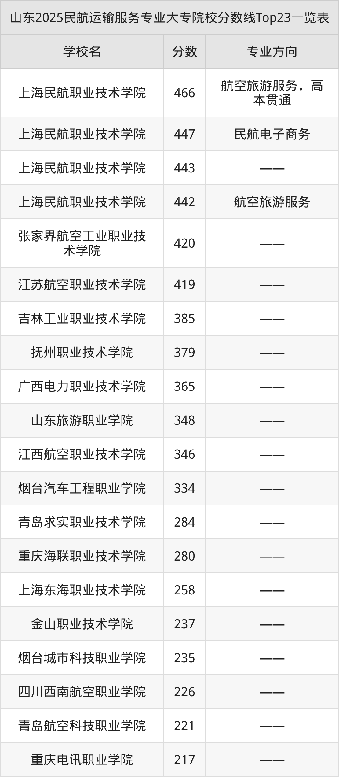 下面是民航运输服务专业大专排名一览表(37所):