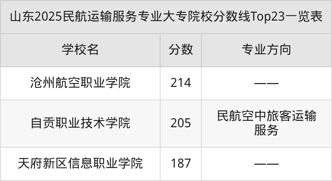 三、民航运输服务大专2025录取分数线