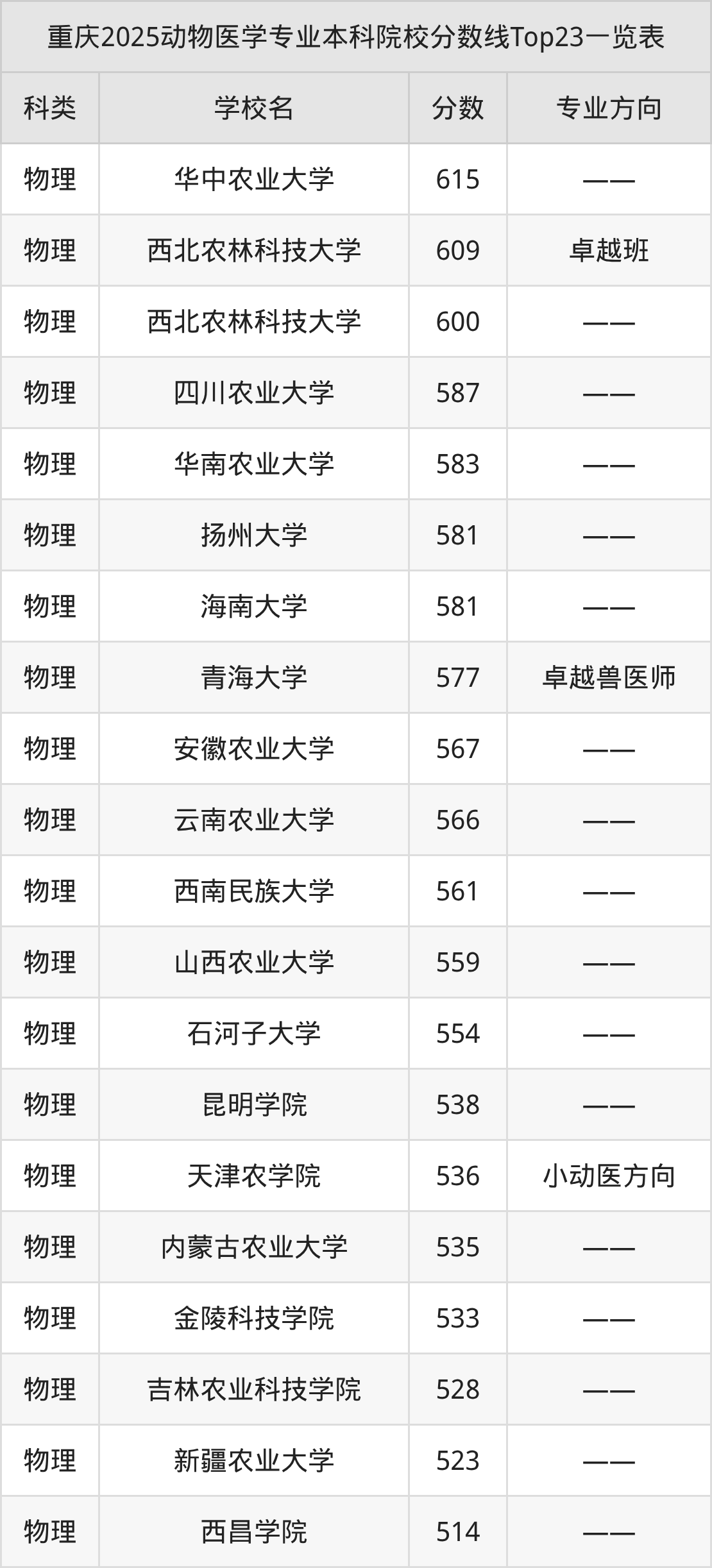 三、动物医学本科大学2025录取分数线