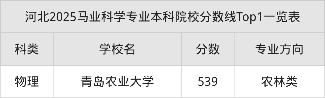 全国本科院校马业科学专业物理类最低收分为539分,对应的招生院校是青岛农业大学。