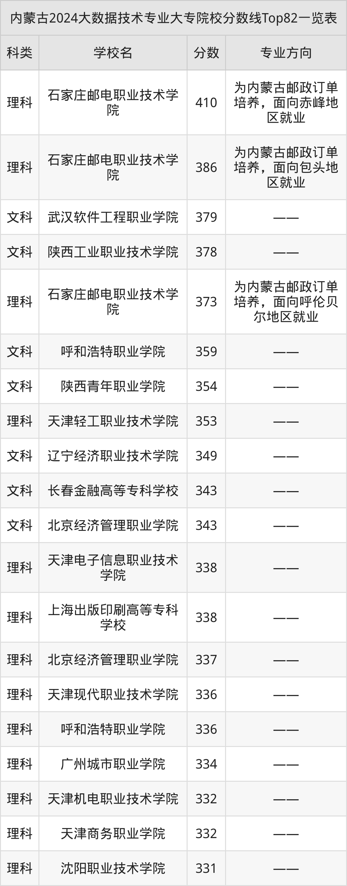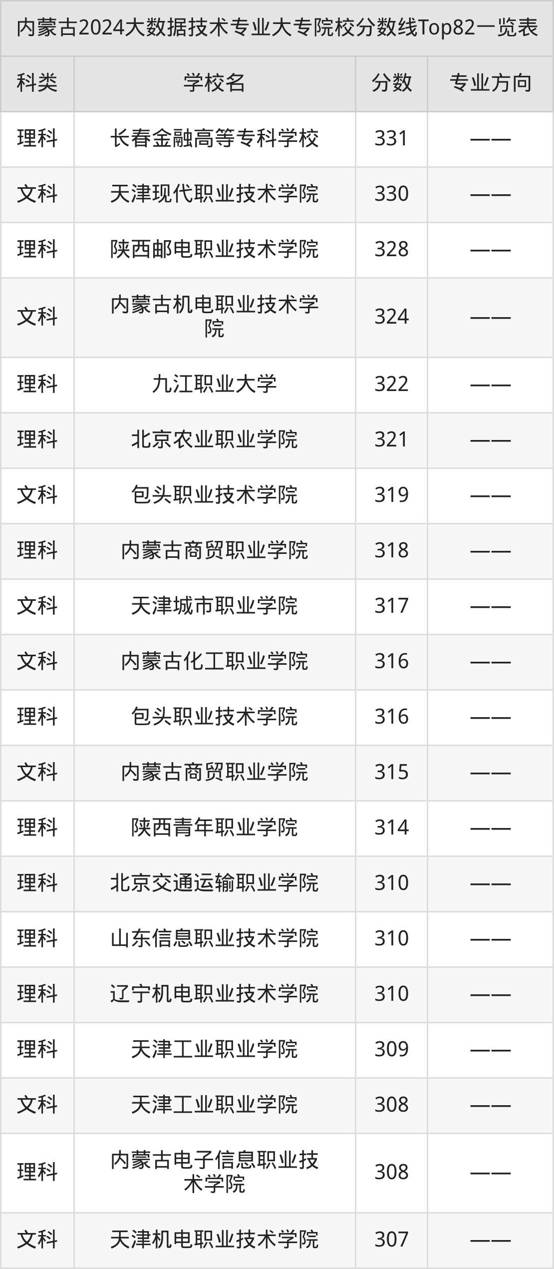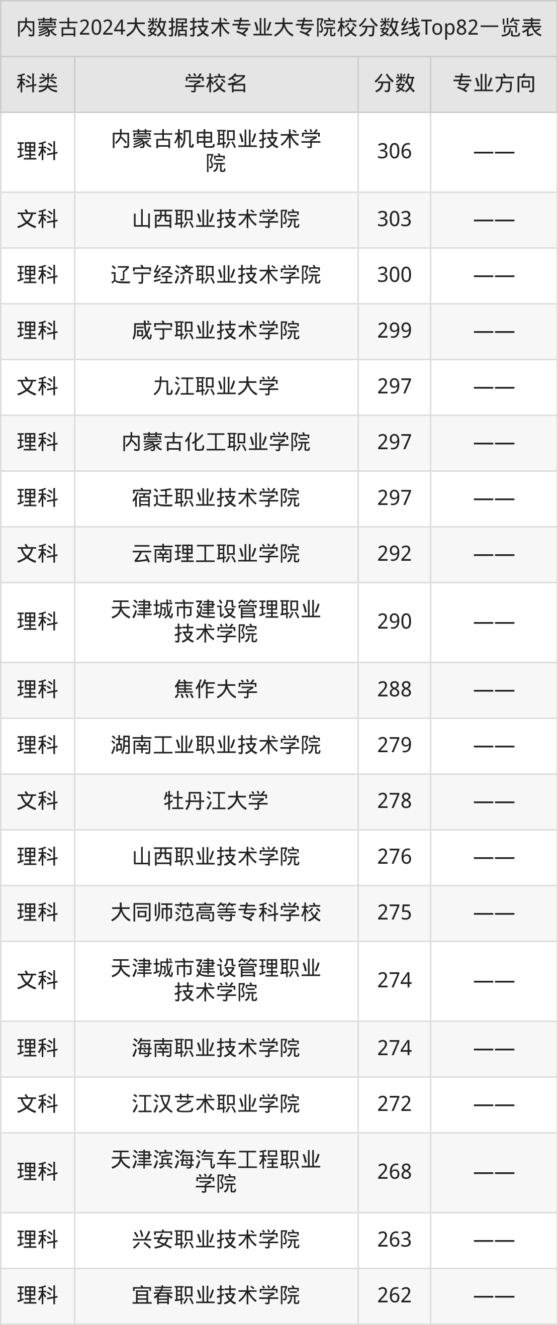大数据技术专业大专院校实力排名靠前的有深圳信息职业技术学院、深圳职业技术大学、重庆电子工程职业学院等。2024年大专大数据技术专业招生最低分数为163分(理科),而想报考该专业的文科考生分数至少要在169分以上。