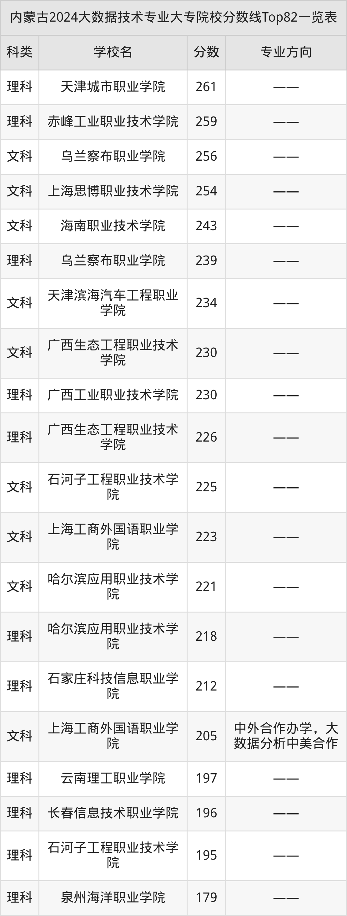 上述院校为有排名的院校,下面根据2024年大数据技术专业大专招生计划表,列举全部招生院校名单(不同省份招生院校名单及数量有差异,这里以吉林高考为例):
