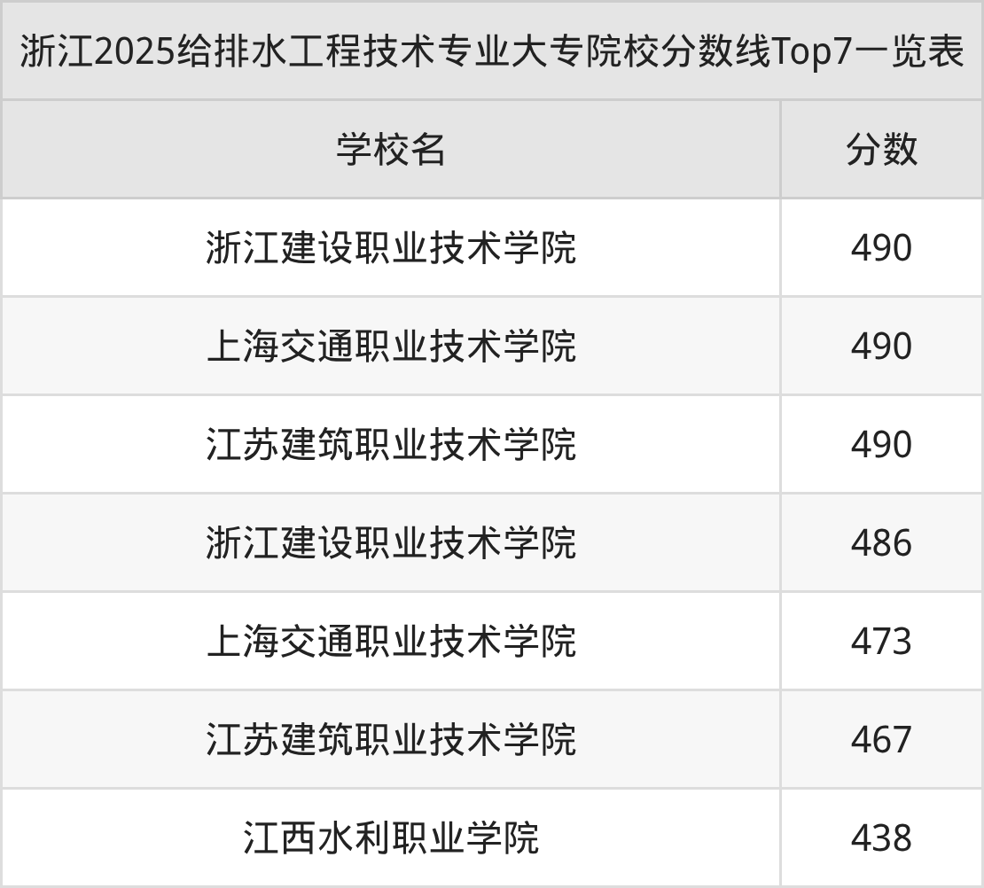 三、给排水工程技术大专2025录取分数线
