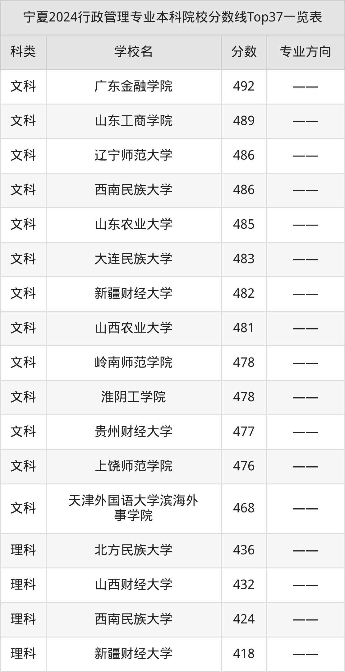 二、行政管理专业本科院校名单
