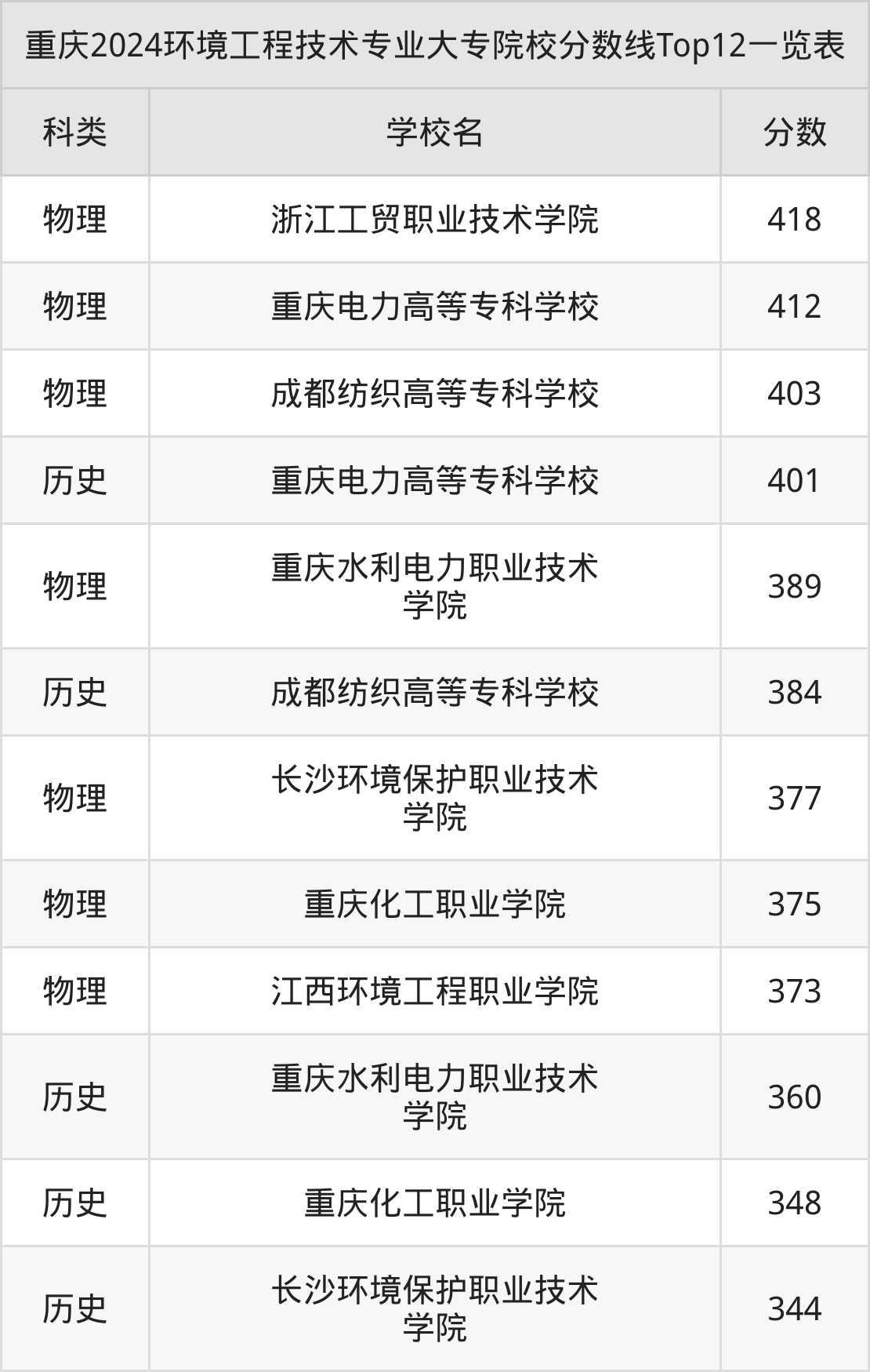 环境工程技术专业大专院校实力排名靠前的有广东环境保护工程职业学院、深圳职业技术大学、长沙环境保护职业技术学院等。2024年大专环境工程技术专业招生最低分数为344分(历史类),而想报考该专业的物理类考生分数至少要在373分以上。