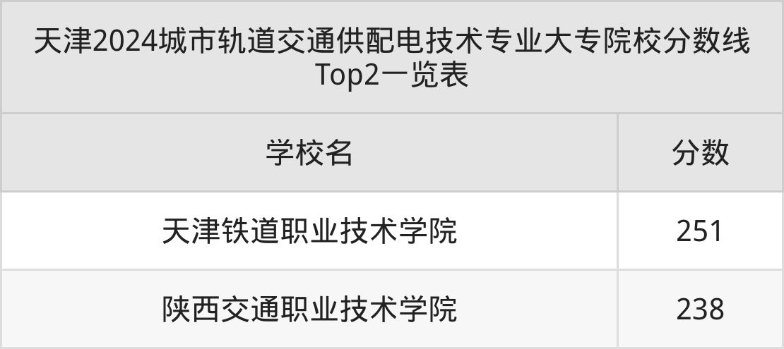 全国大专院校城市轨道交通供配电技术专业最低收分范围在238分~251分之间,考生最容易被录取的是陕西交通职业技术学院,分数门槛在本科线上238分。最难被录取的是天津铁道职业技术学院,分数门槛在本科线上251分。