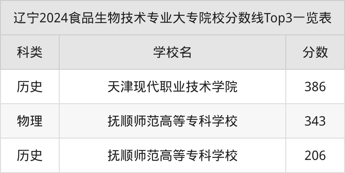 物理类最低收分为343分,对应的招生院校是抚顺师范高等专科学校。结合上述分析,历史类考生比物理类考生更容易上食品生物技术大专院校。