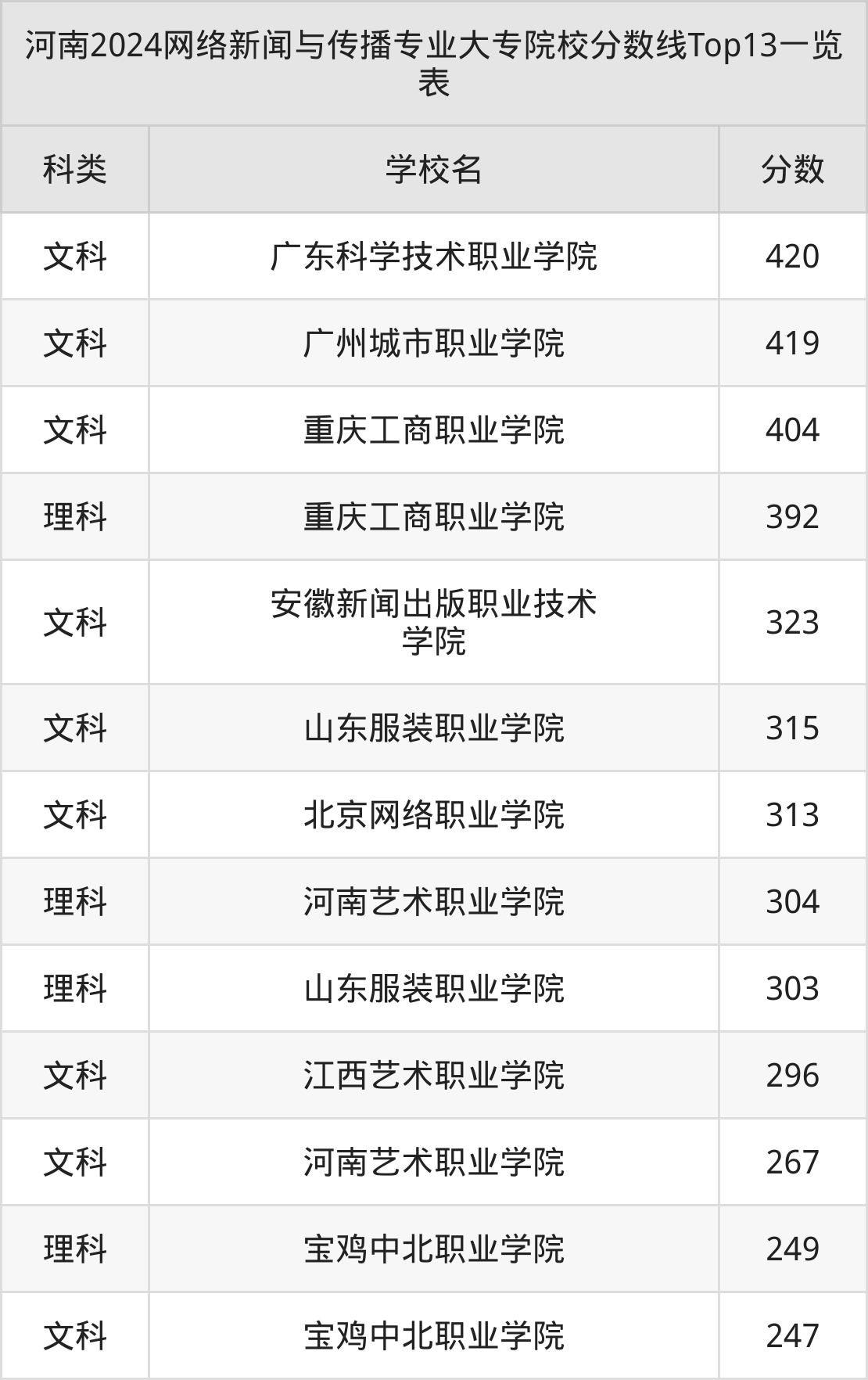 网络新闻与传播专业大专院校实力排名靠前的有广东科学技术职业学院、湖南大众传媒职业技术学院、广州城市职业学院等。2024年大专网络新闻与传播专业招生最低分数为247分(文科),而想报考该专业的理科考生分数至少要在249分以上。