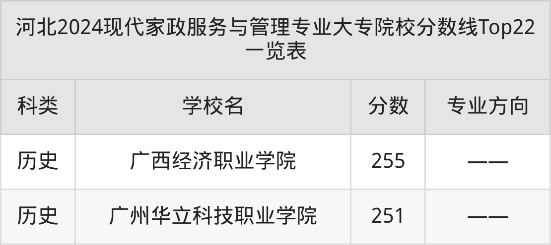 上述院校为有排名的院校,下面根据2024年现代家政服务与管理专业大专招生计划表,列举全部招生院校名单(不同省份招生院校名单及数量有差异,这里以河北高考为例):