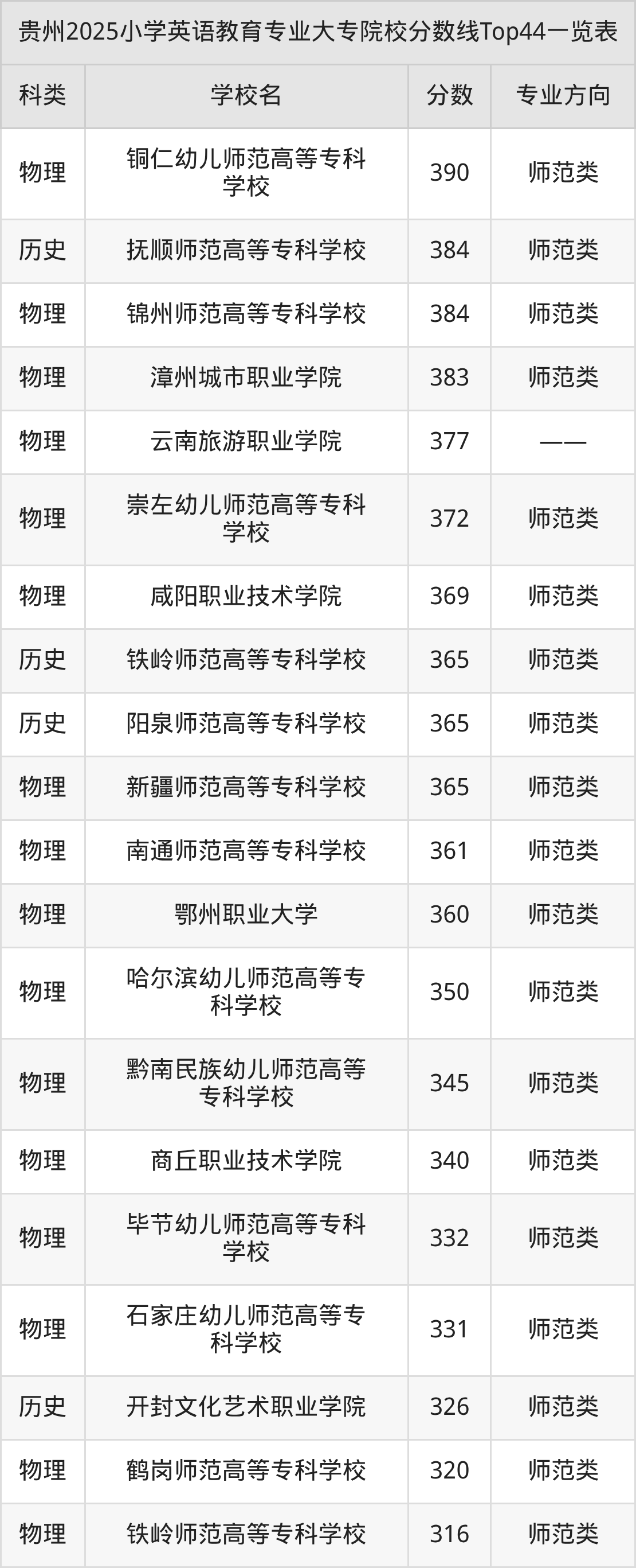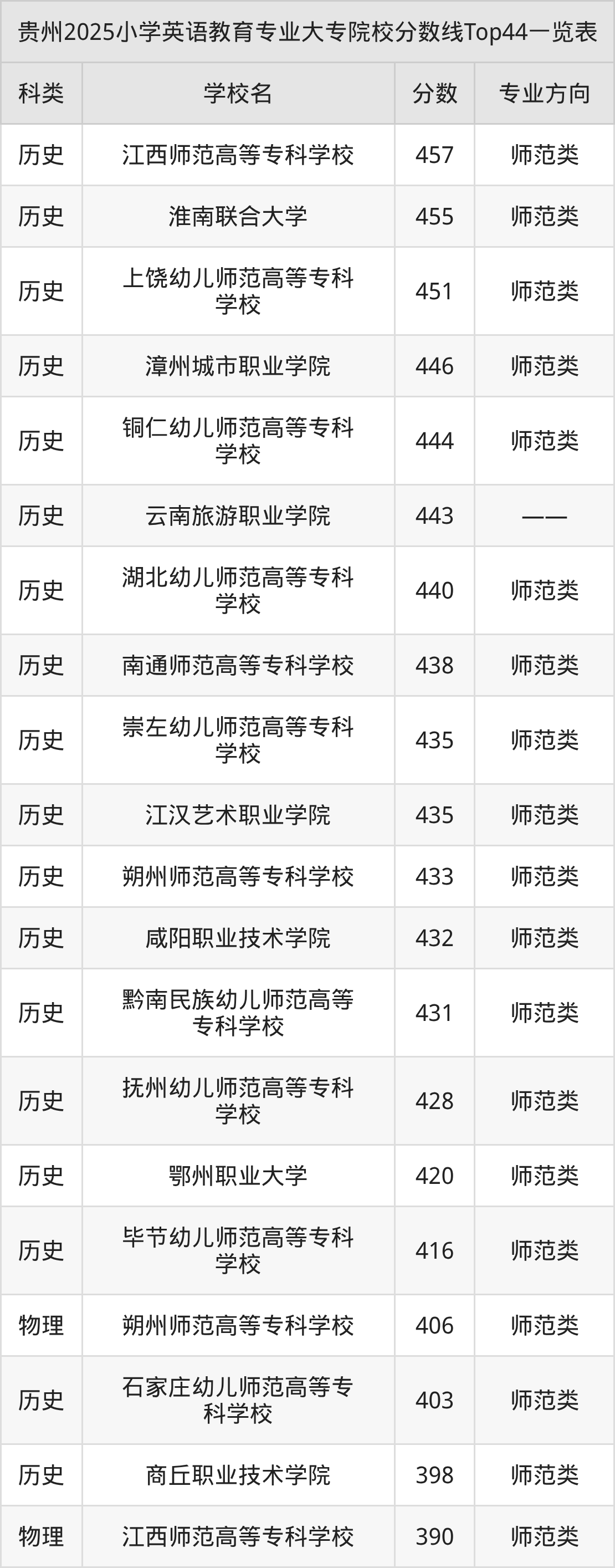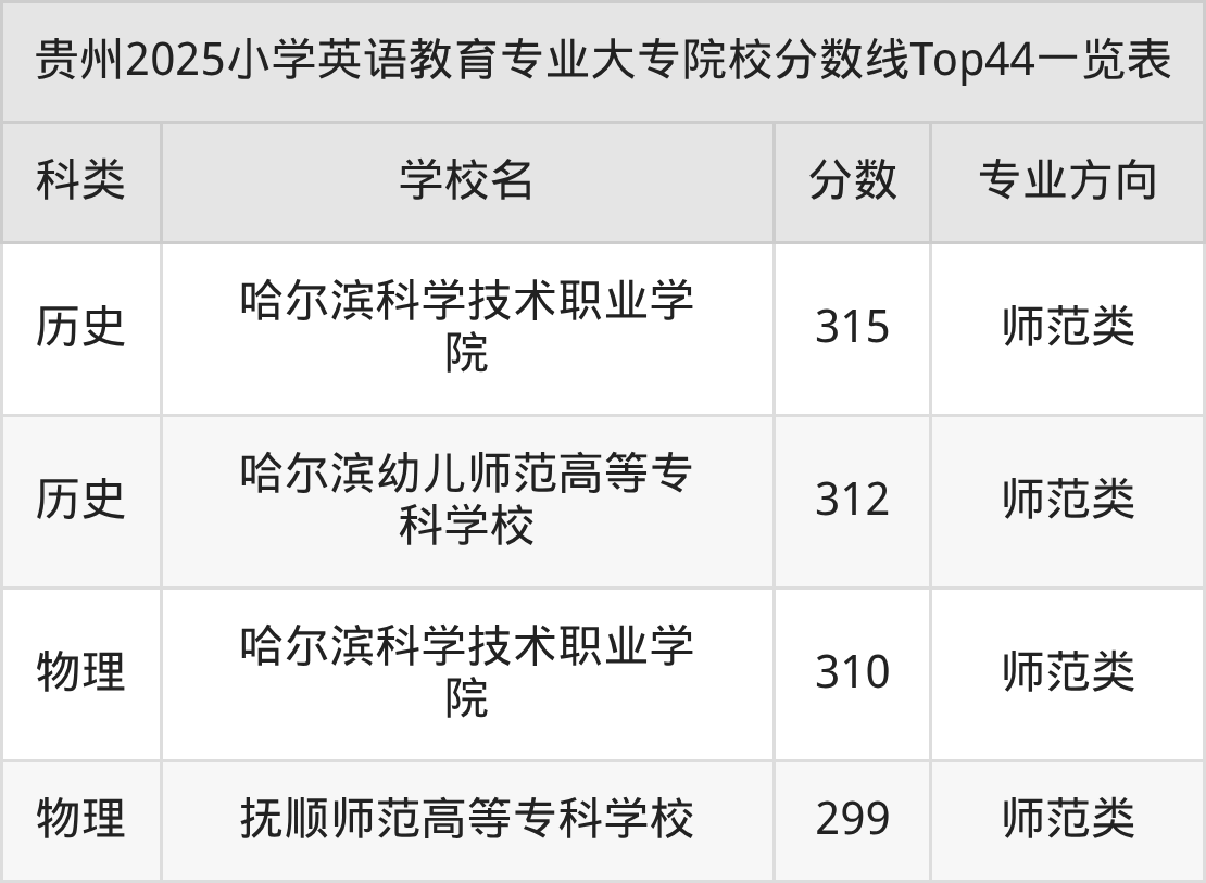 三、小学英语教育大专2025录取分数线