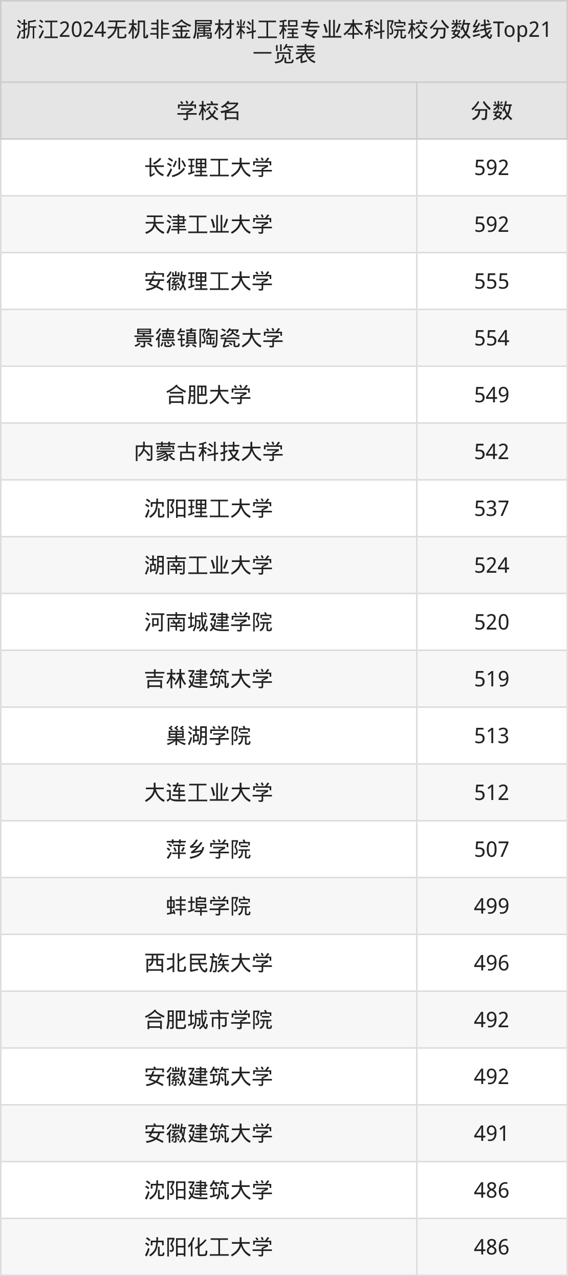 全国本科院校无机非金属材料工程专业最低收分范围在474分~592分之间,考生最容易被录取的是合肥城市学院,分数门槛在一段线下18分。最难被录取的是长沙理工大学,分数门槛在一段线上100分。