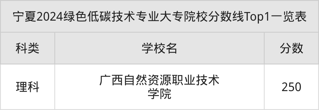 全国大专院校绿色低碳技术专业理科最低收分为250分,对应的招生院校是广西自然资源职业技术学院。