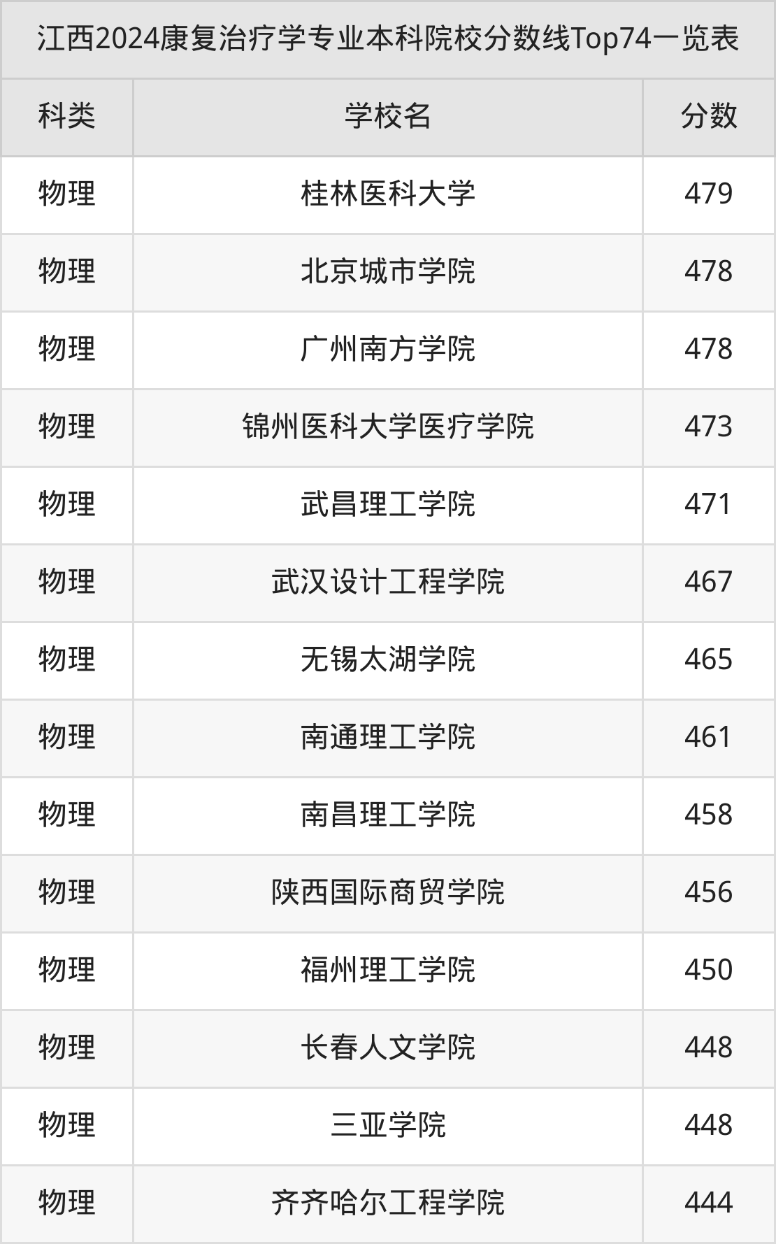 康复治疗学专业本科院校实力排名靠前的有首都医科大学、四川大学、吉林大学等。2024年本科康复治疗学专业招生最低分数为444分(物理类)。